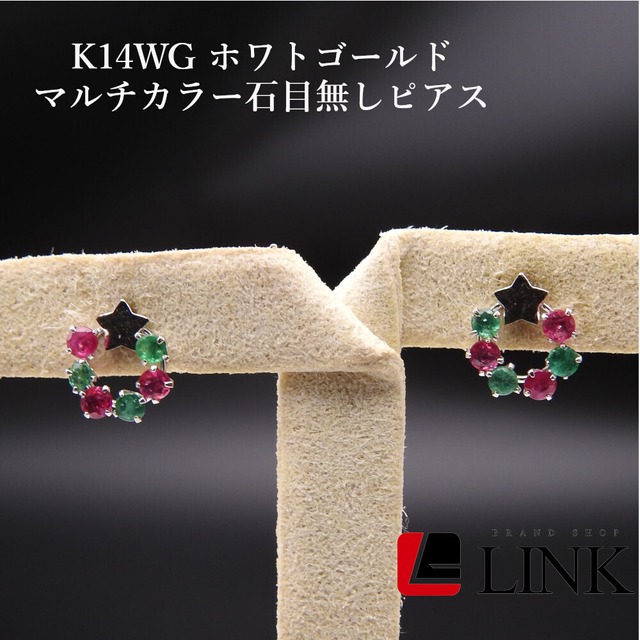 K14WG ホワトゴールド マルチカラー石目無しピアス レディース アクセサリー 両耳