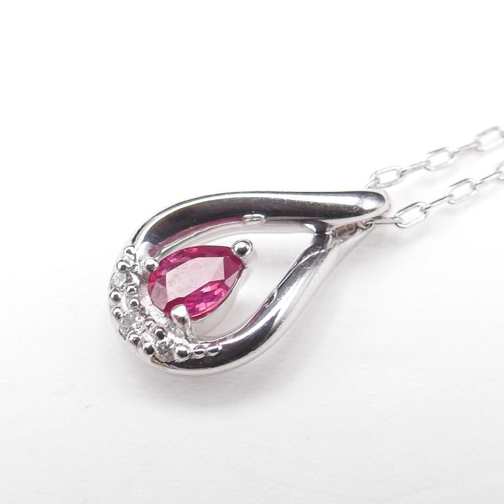 4℃ ヨンドシー K18WG ホワイトゴールド ルビー ダイヤモンドDネックレス レディース 40cm アクセサリー
