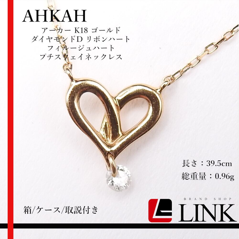 限定品 AHKAH アーカー K18 ゴールド ダイヤモンドD リボンハート フィルージュハート プチスウェイネックレス アクセサリー ジュエリー