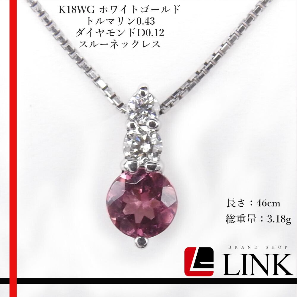 K18WG トルマリン0.43 ダイヤモンドD0.12 スルーネックレス