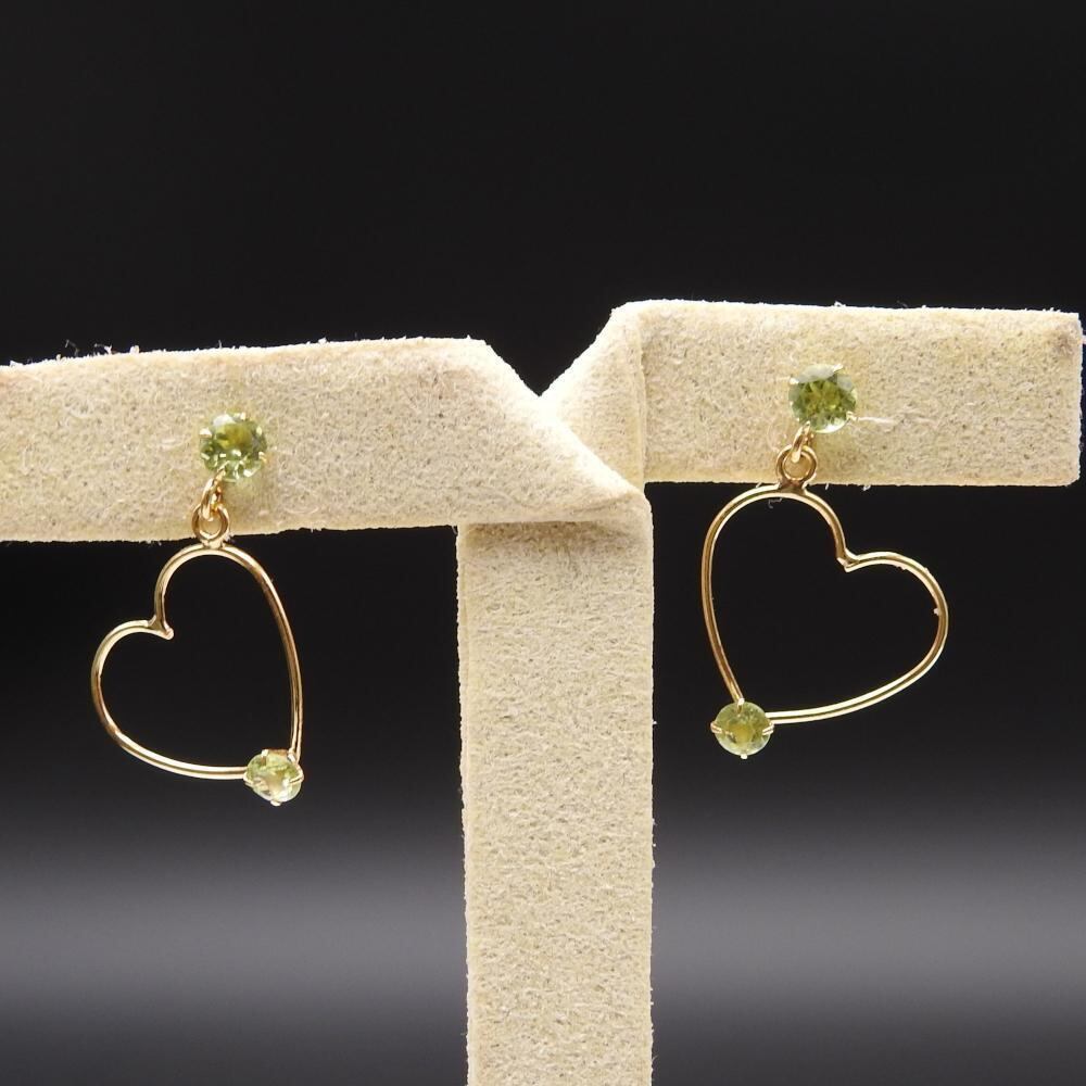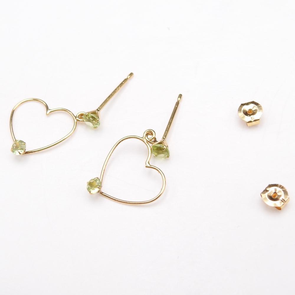 K18YG イエローゴールド 色石 ハートピアス レディース ジュエリー両耳