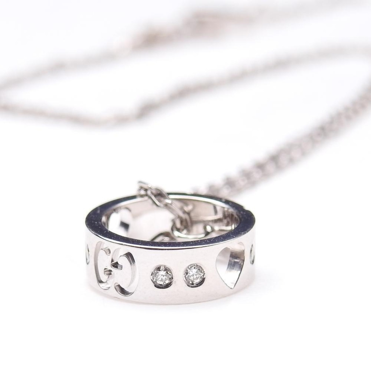 美品 Gucci グッチ ネックレス K18WG 750 アイコン アモール ハート 8Pダイヤモンド レディース