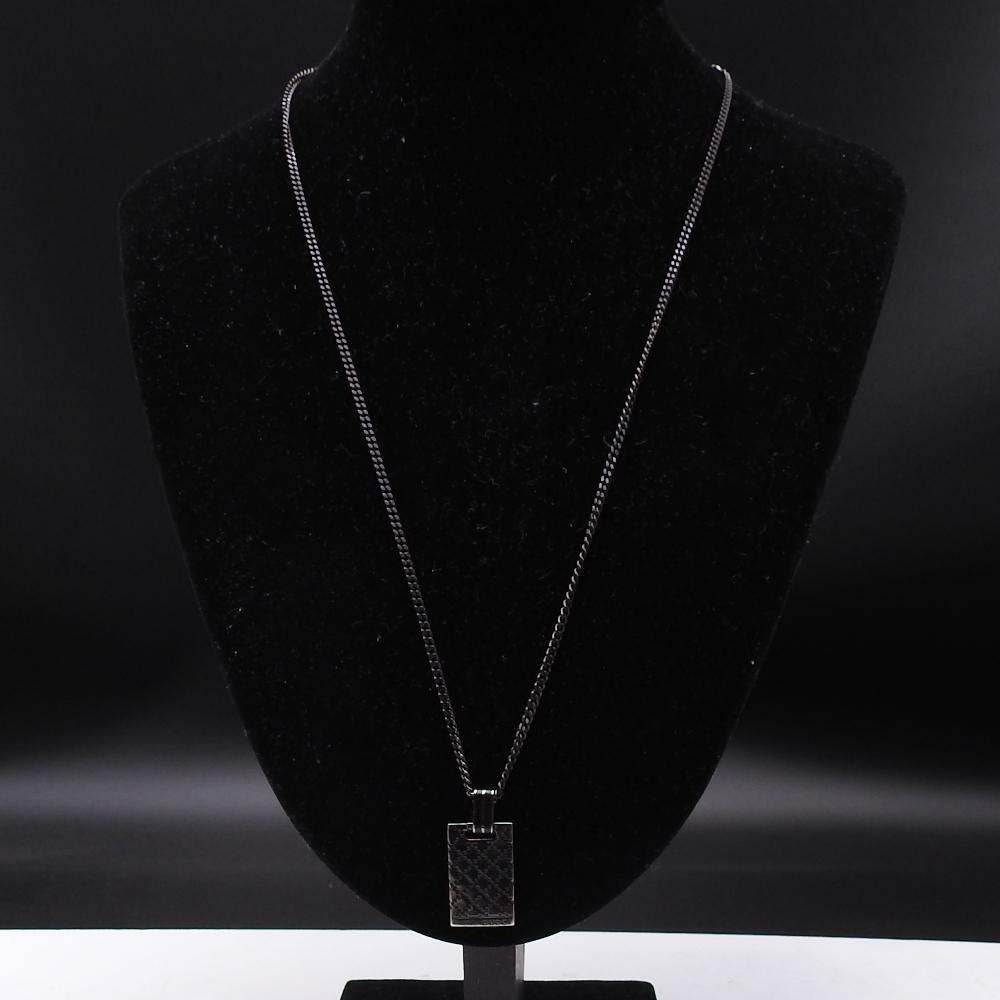 【商品名】GUCCI グッチ ネックレス ロゴ刻印ディアマンテスクエアプレート ガンメタシルバー ブラックエナメルウェブ SV925 アクセサリー メンズ レディース