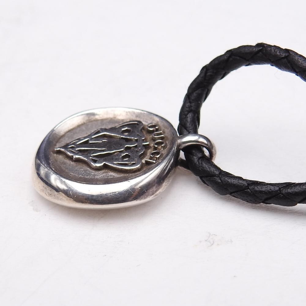 GUCCI グッチ ネックレス クレスト ペンダント 紋章 レザー チョーカー 編み SV925 アクセサリー メンズ レディース