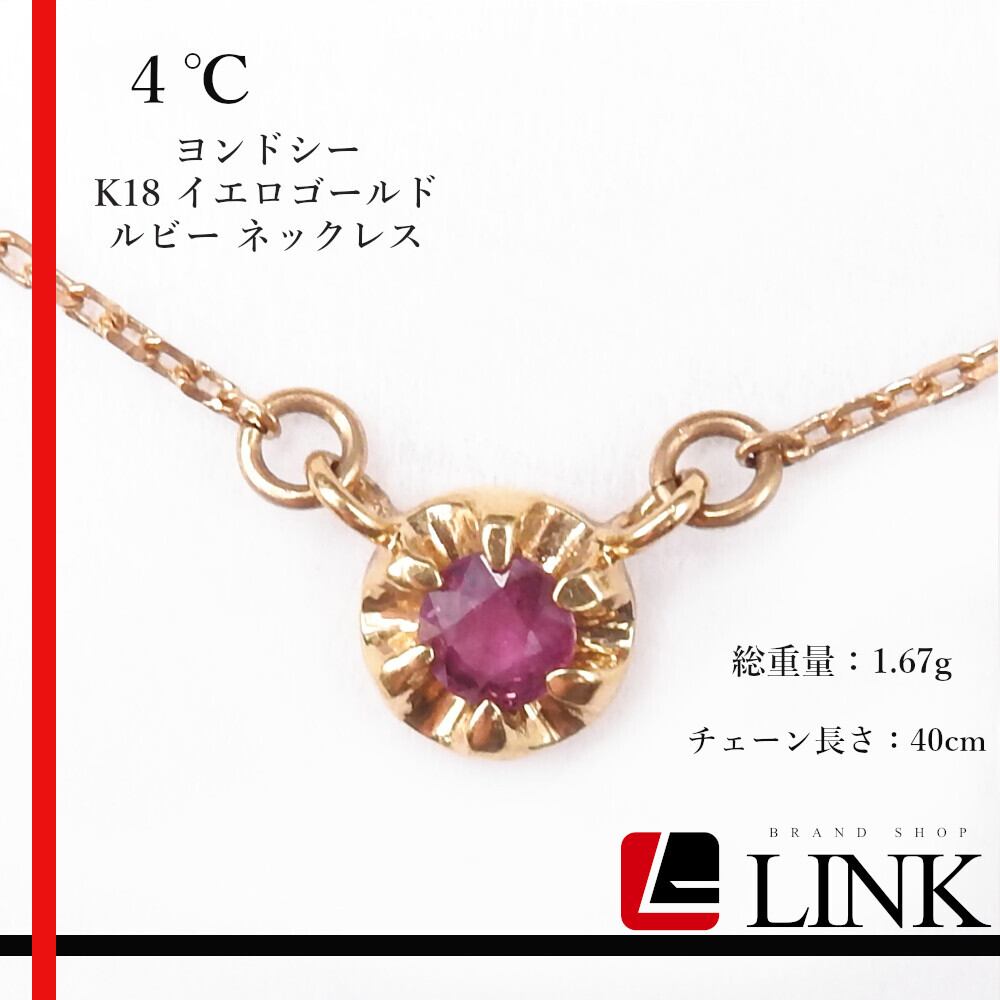 4℃ ヨンドシー K18 イエロゴールド ルビー ネックレス 40cm レディース