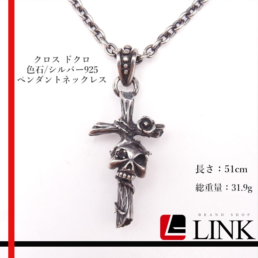 【商品名】クロス ドクロ 色石/シルバー925 ペンダントネックレス