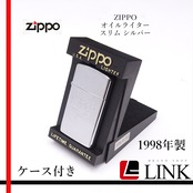 【商品名】ZIPPO オイルライター シルバー スリム 1998年製 ジッポー ケース付き