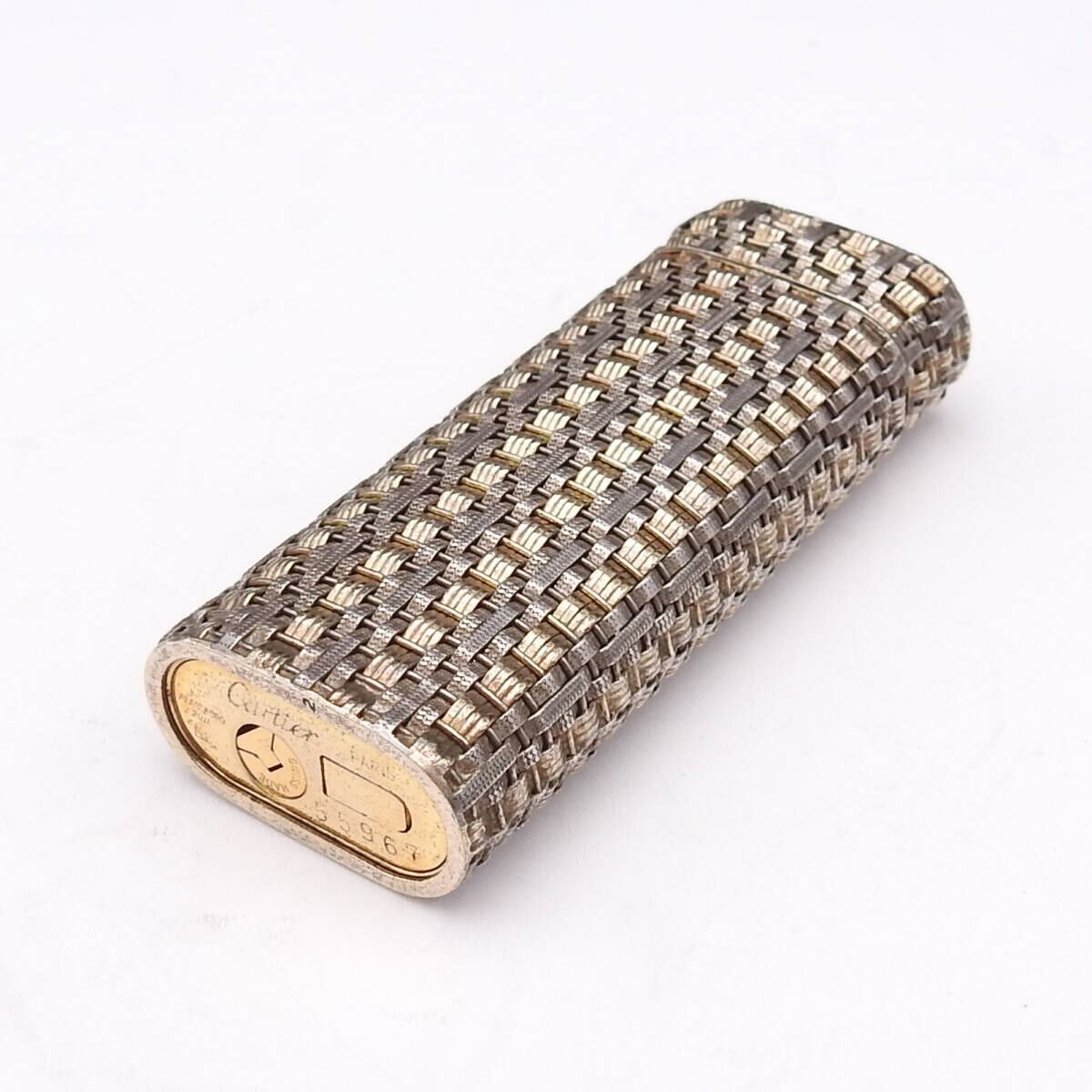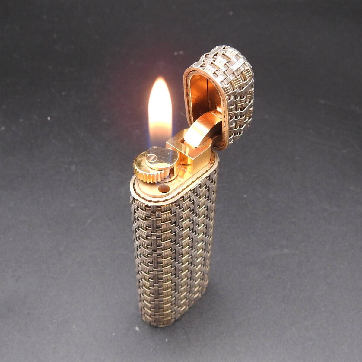 希少品【着火確認済み】OH済み カルティエ ガスライター アウタージャケット付 メッシュ 編み込み オーバル ゴールド