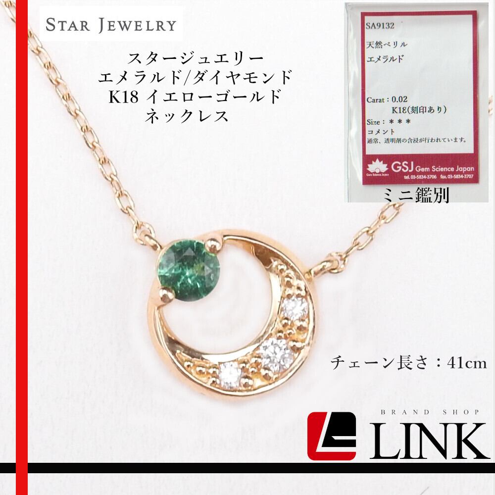 スタージュエリー STAR JEWELRY エメラルド/ダイヤモンド K18 イエローゴールド ネックレス