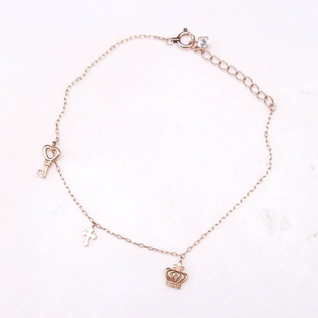 K10 ピンクゴールド キー/クロス/クラウン 透明石 ブレスレット