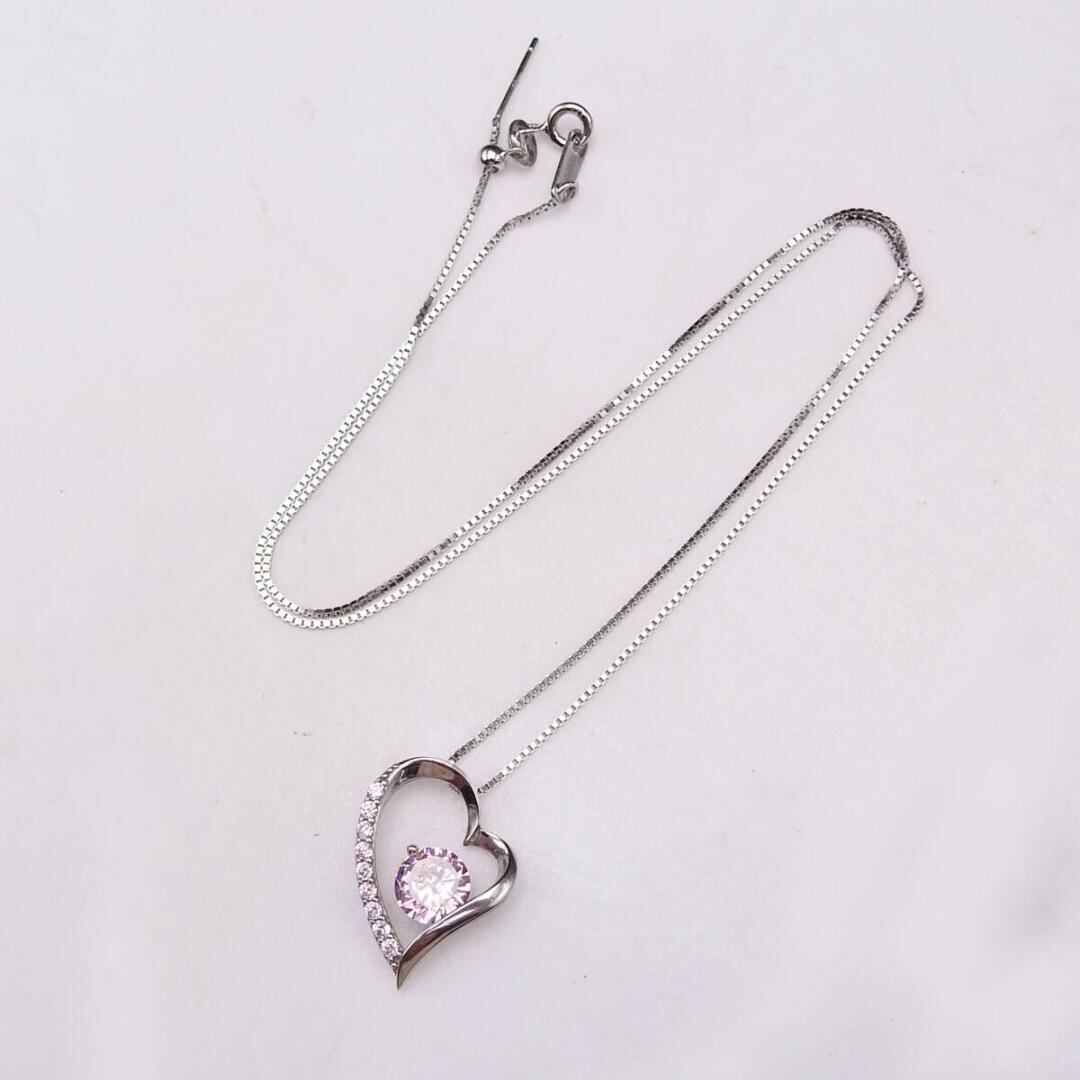 色石 ハートモチーフ SV925 スルーネックレス ジュエリー レディース