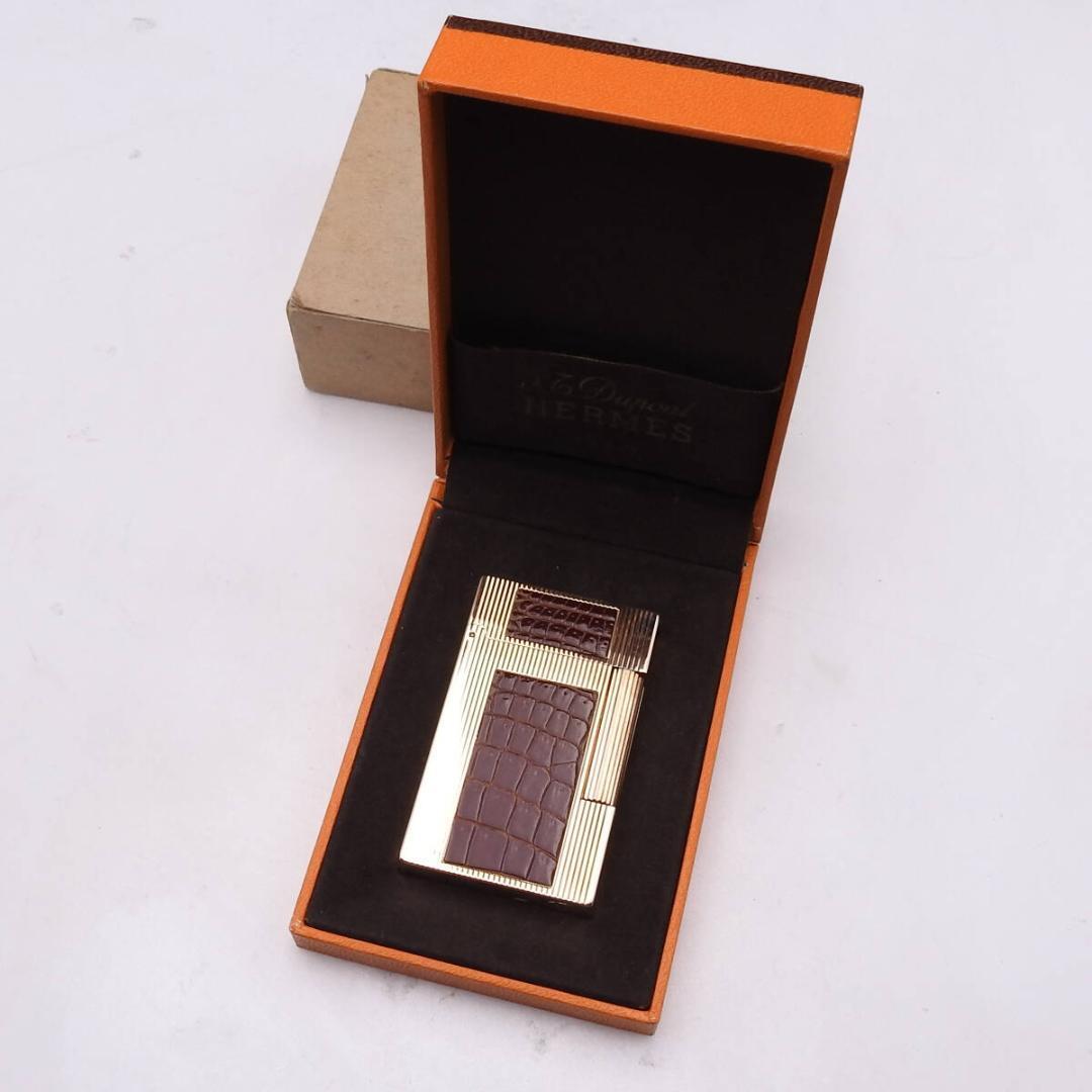 【商品名】希少品 OH済み S.T Dupont エス テー デュポンxエルメス Wネーム ライン2 クロコダイルレザーローラーガスライター