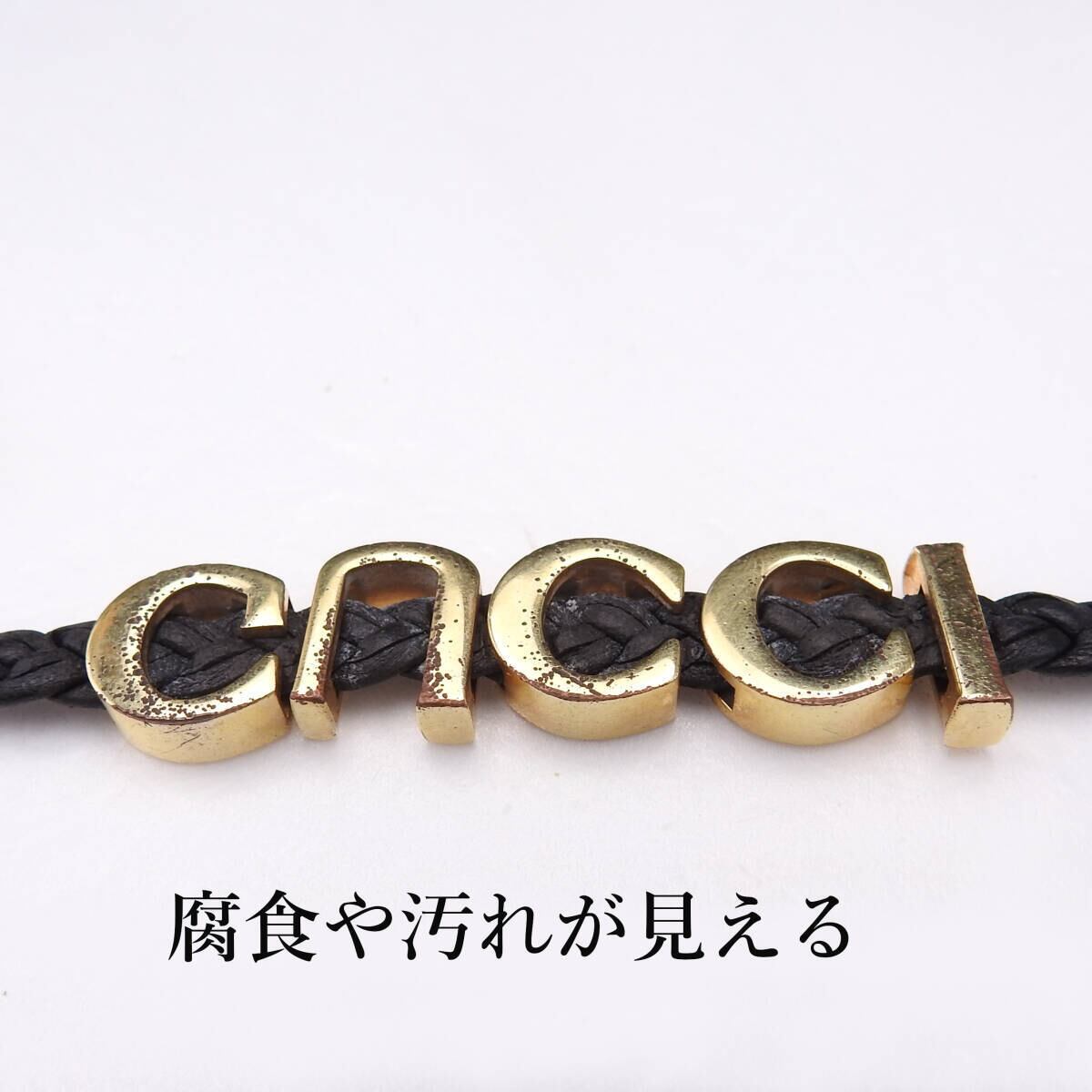 【商品名】Gucci グッチ レディース 編み込みレザーブレスレット メタルロゴチャーム ジュエリー