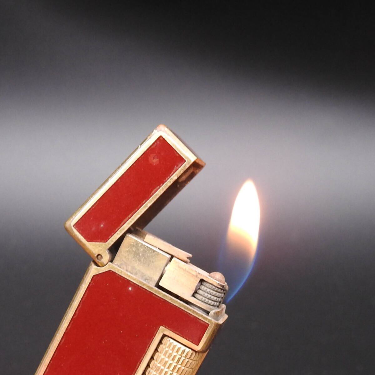 【着火確認済み】ダンヒル dunhill ローラーガスライター ボルドー×ゴールド 喫煙グッズ