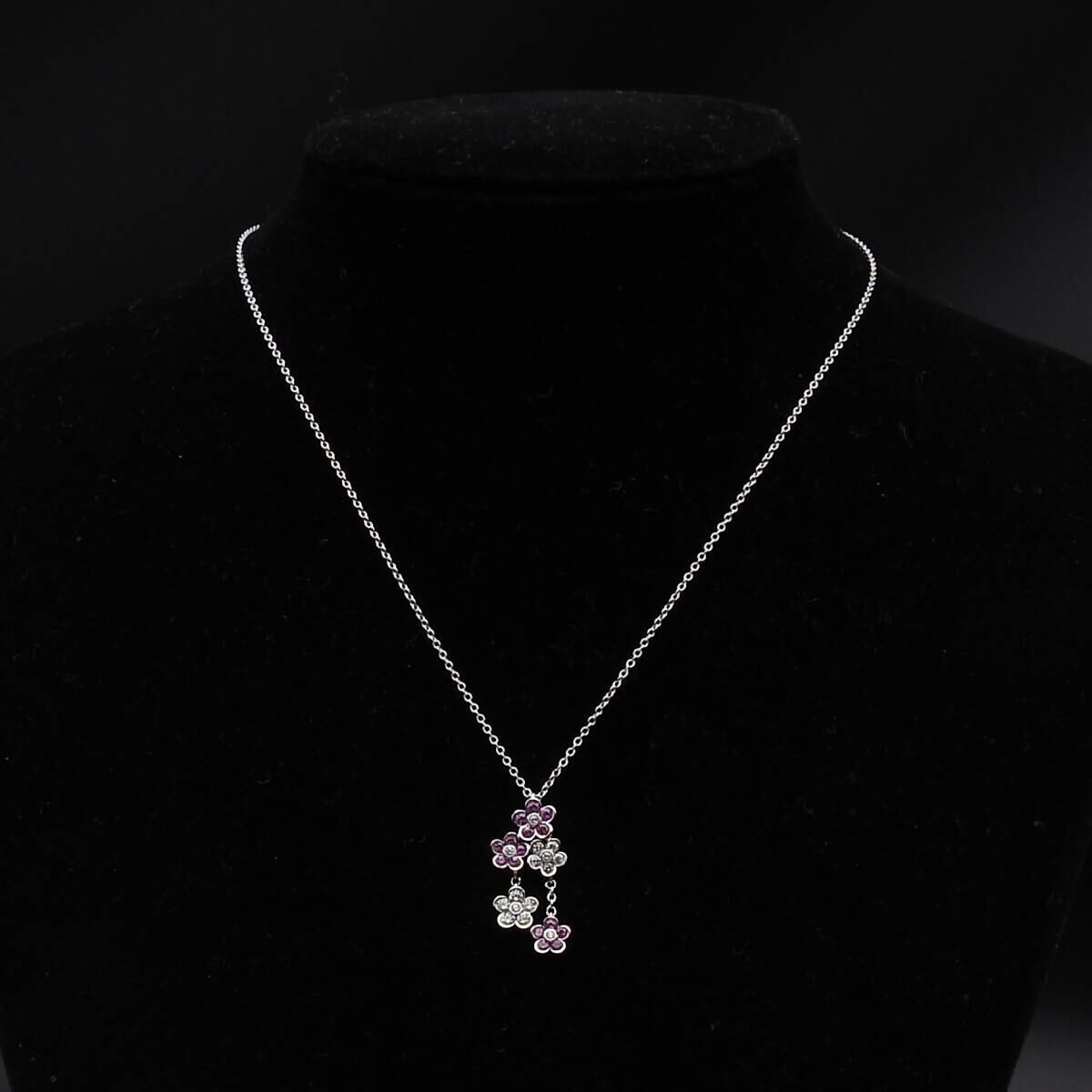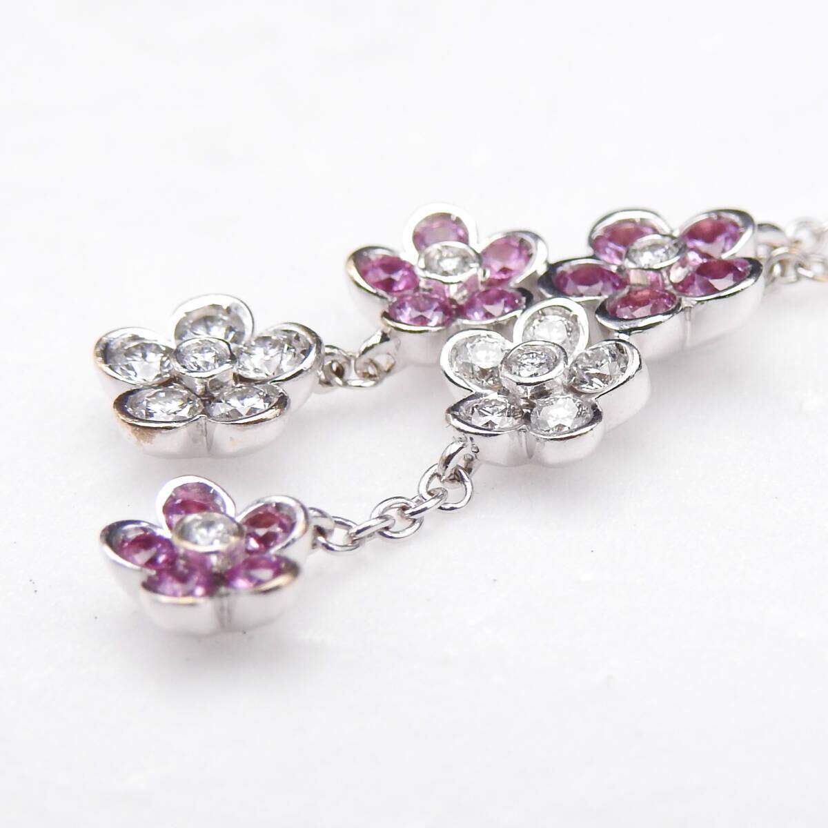Ponte Vecchio(ポンテヴェキオ)750 ホワイトゴールド ピンクサファイア0.46 ダイヤモンドFD0.33 花モチーフ ネックレス レディース
