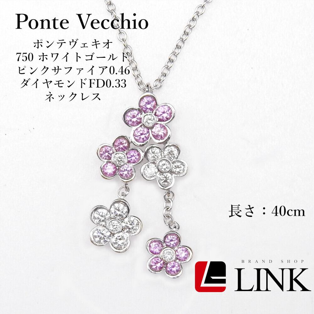 Ponte Vecchio(ポンテヴェキオ)750 ホワイトゴールド ピンクサファイア0.46 ダイヤモンドFD0.33 花モチーフ ネックレス レディース アクセサリー