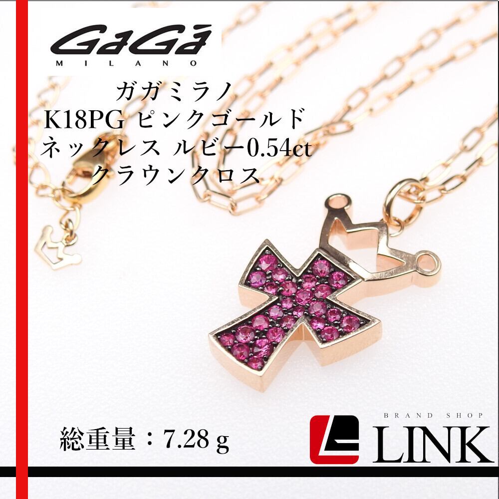正規品 GaGaMILANO ガガミラノ K18PG ピンクゴールド ネックレス ルビー0.54ct クラウンクロス メンズ レディース