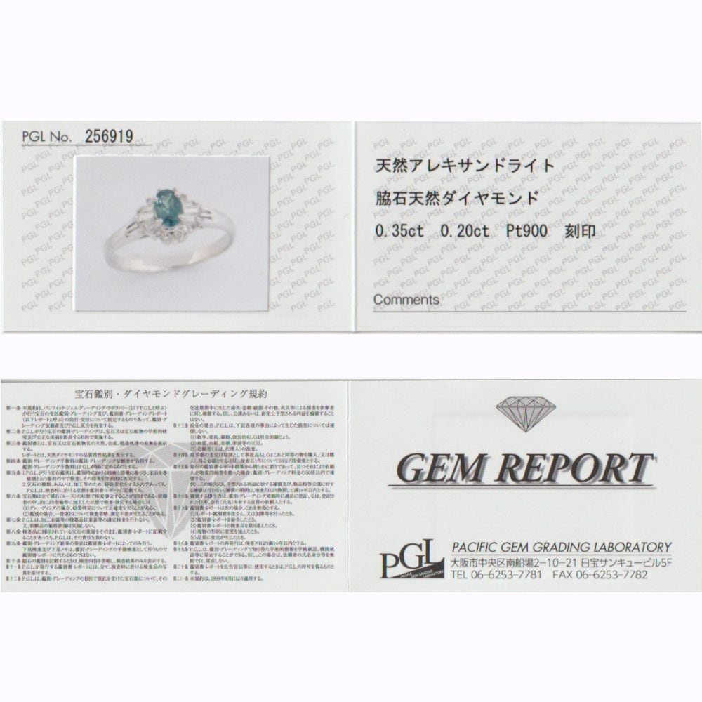 PT900 プラチナ アレキサンドライト0.35ct ダイヤモンド0.20ctリング PGLミニ鑑別付 レディース 12号