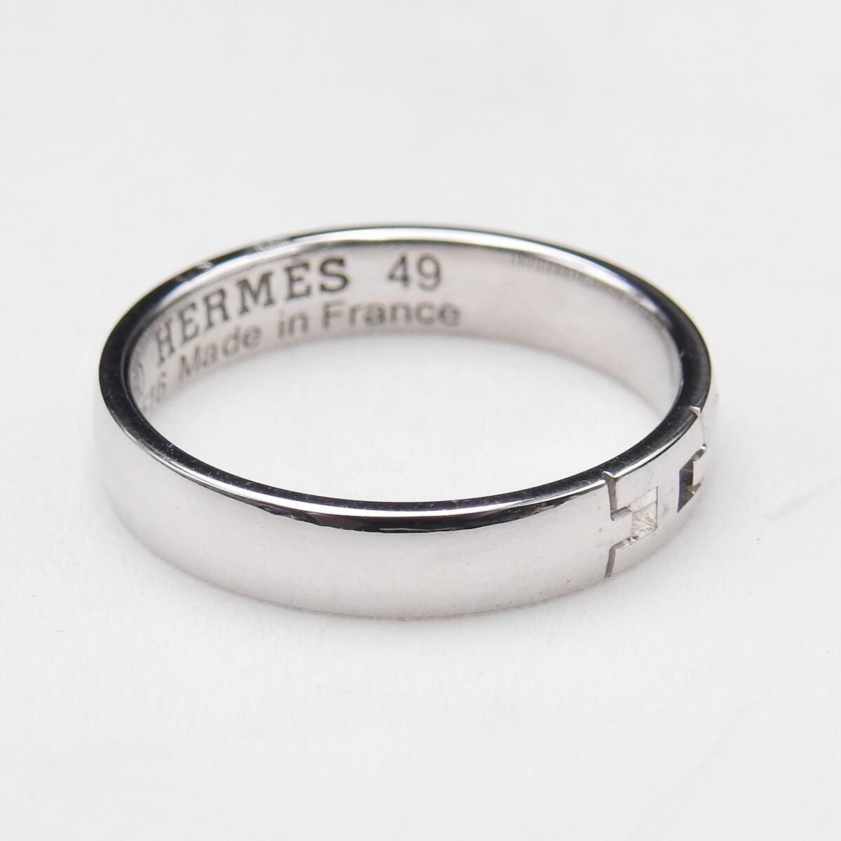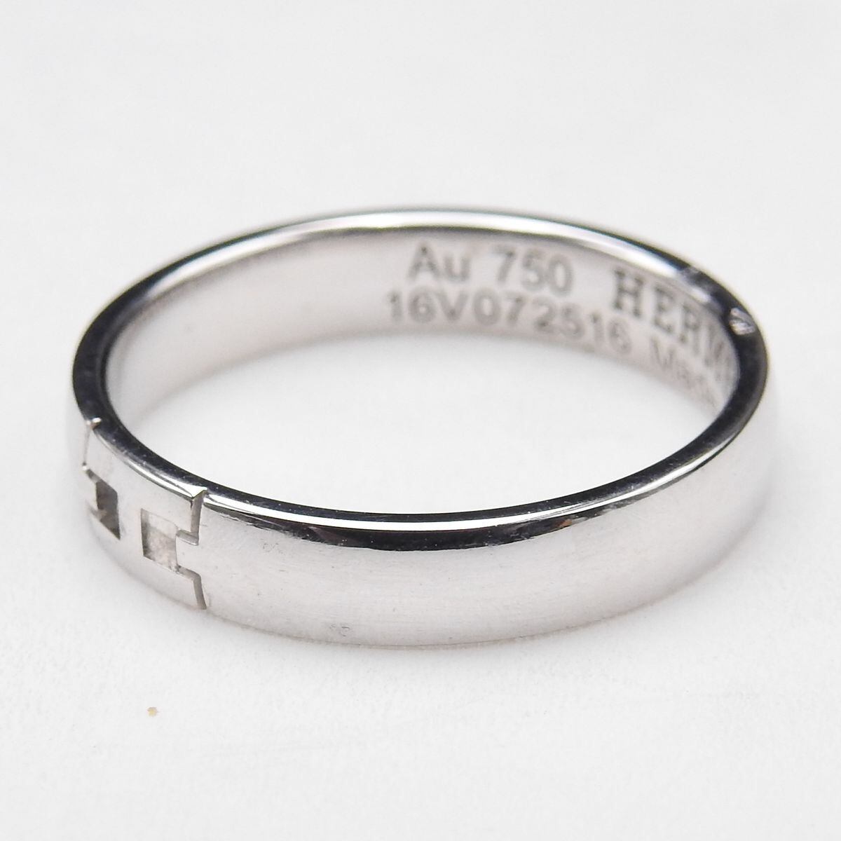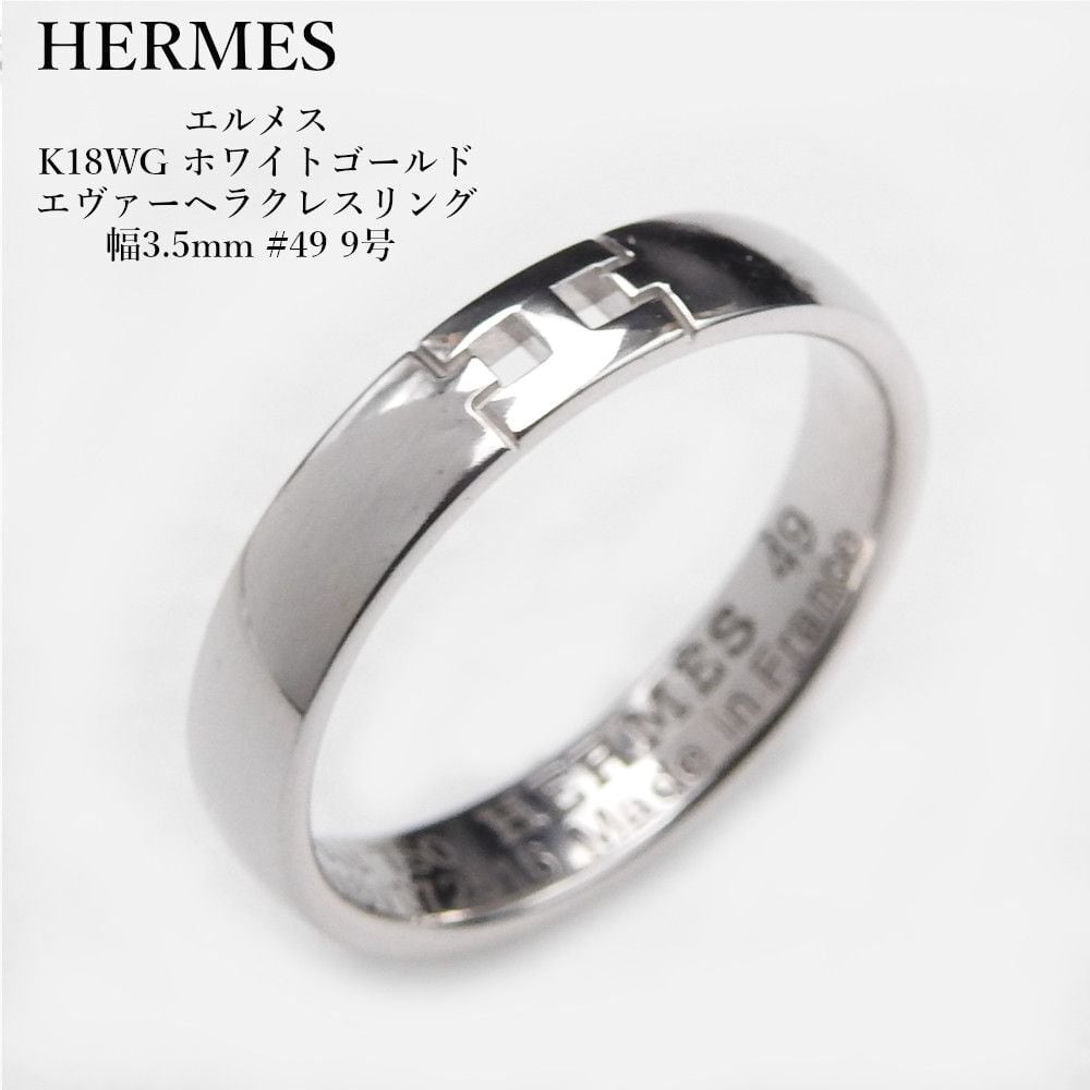 美品 HERMES エルメス K18WG ホワイトゴールド エヴァーヘラクレスリング 幅3.5mm #49 9号 レディース