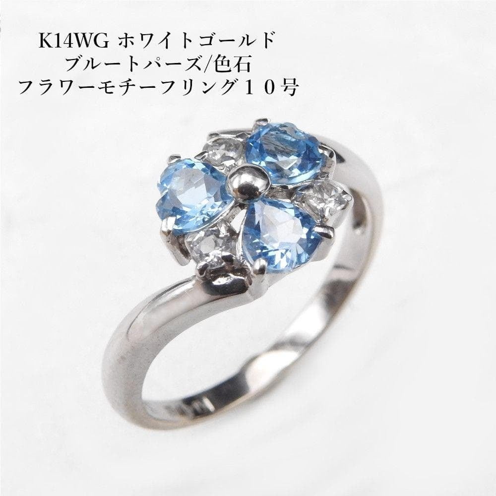 K14WG ホワイトゴールド ブルートパーズ/色石 フラワーモチーフリング10号