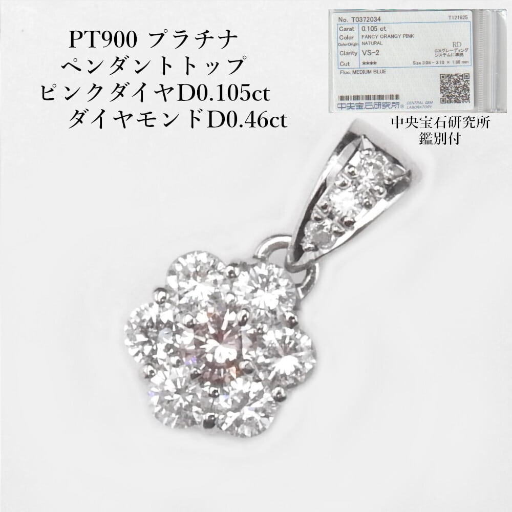 【商品名】PT900 プラチナ ペンダントトップ ピンクダイヤD0.105ct ダイヤモンドD0.46ct レディース 中央宝石研究所鑑別付