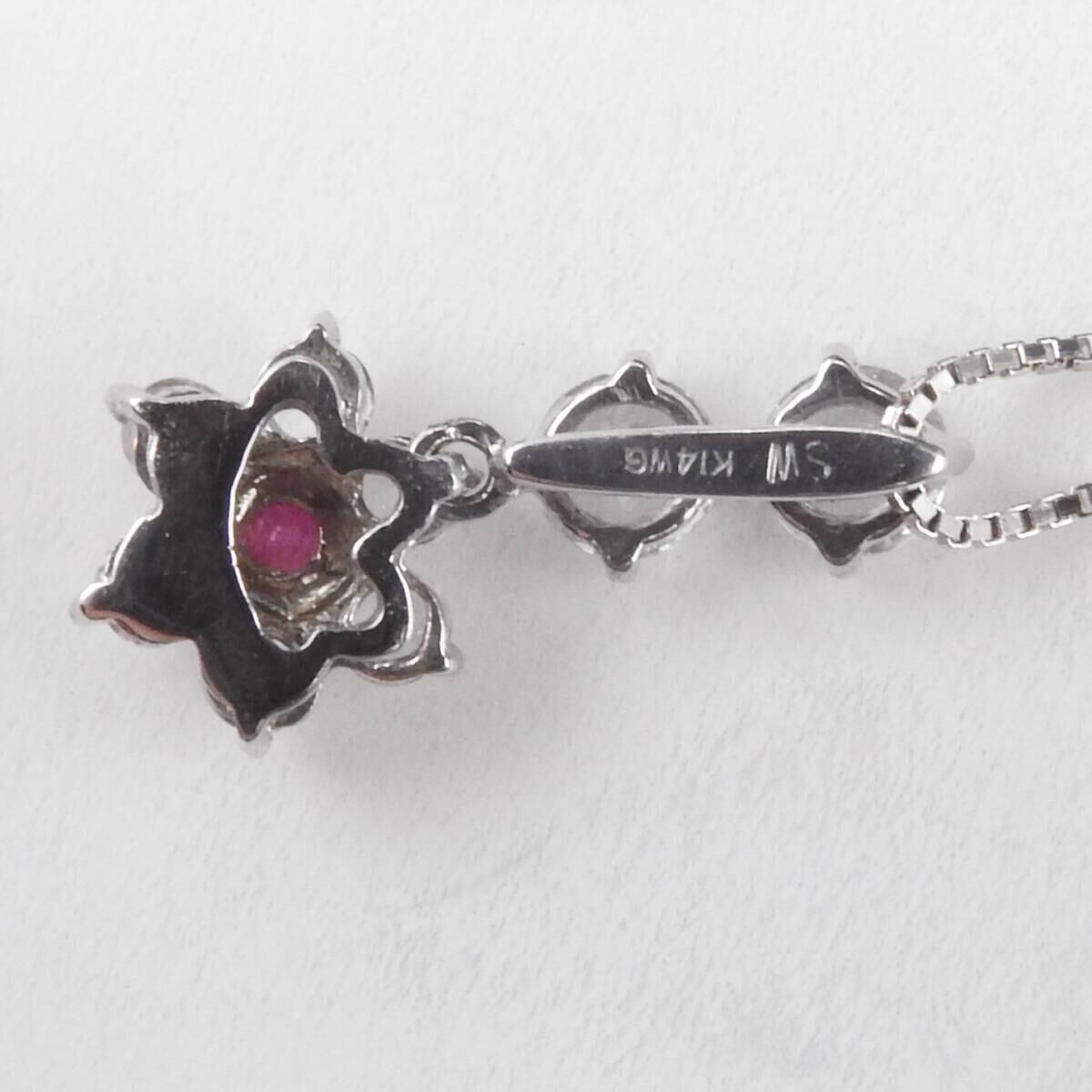ルビー/透明石 ペンダントネックレス K14WG ホワイトゴールド レディース 40cm アクセサリー