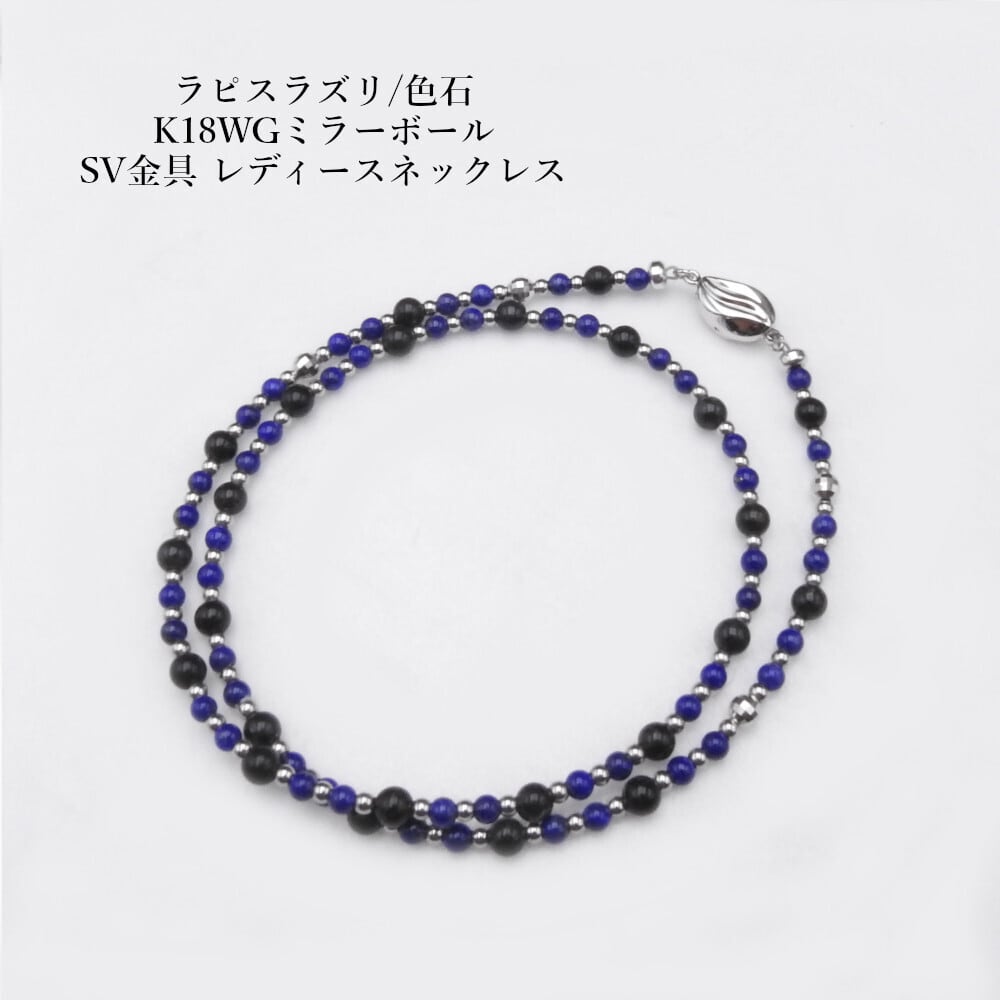 【商品名】ラピスラズリ/色石 K18WGミラーボール SV金具 レディースネックレス 45cm