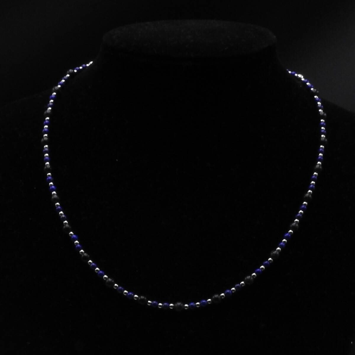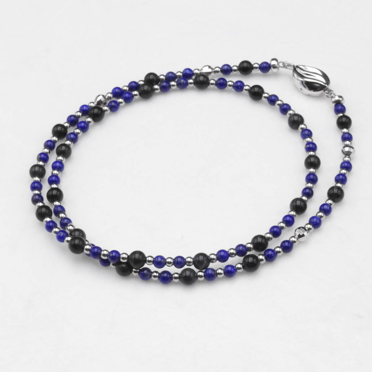 ラピスラズリ/色石 K18WGミラーボール SV金具 レディースネックレス 45cm