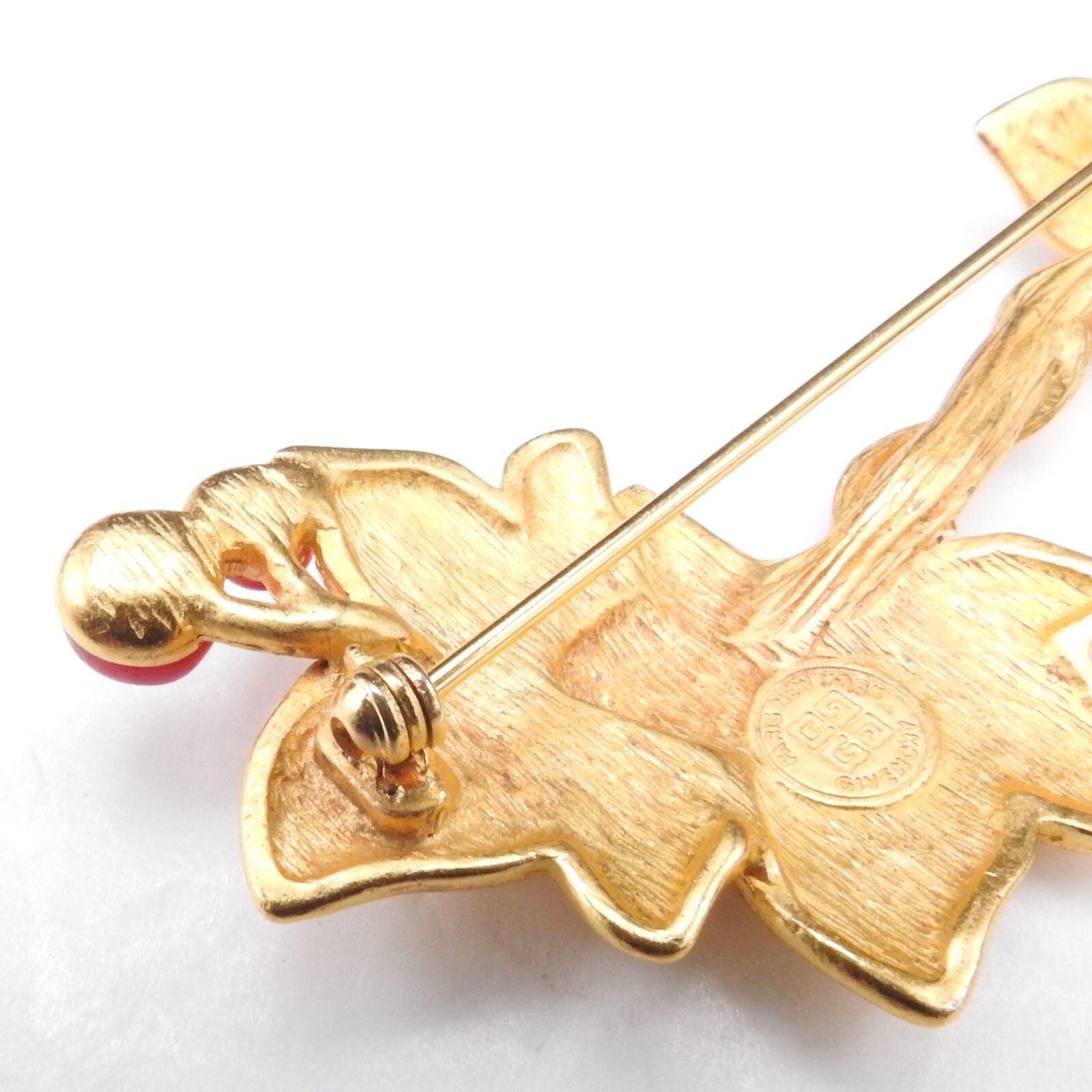 【商品】GIVENCHY ジバンシィの小枝ブローチ ゴールド×レッド レディース 金メッキ ヴィンテージ
