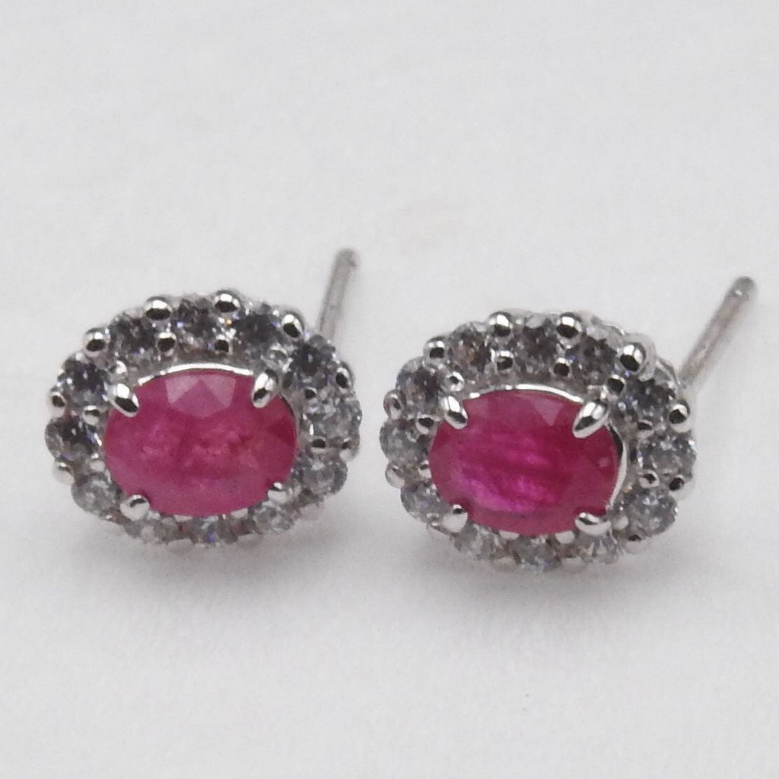 K10 ホワイトゴールド ルビー/透明石ピアス レディース ジュエリー アクセサリー