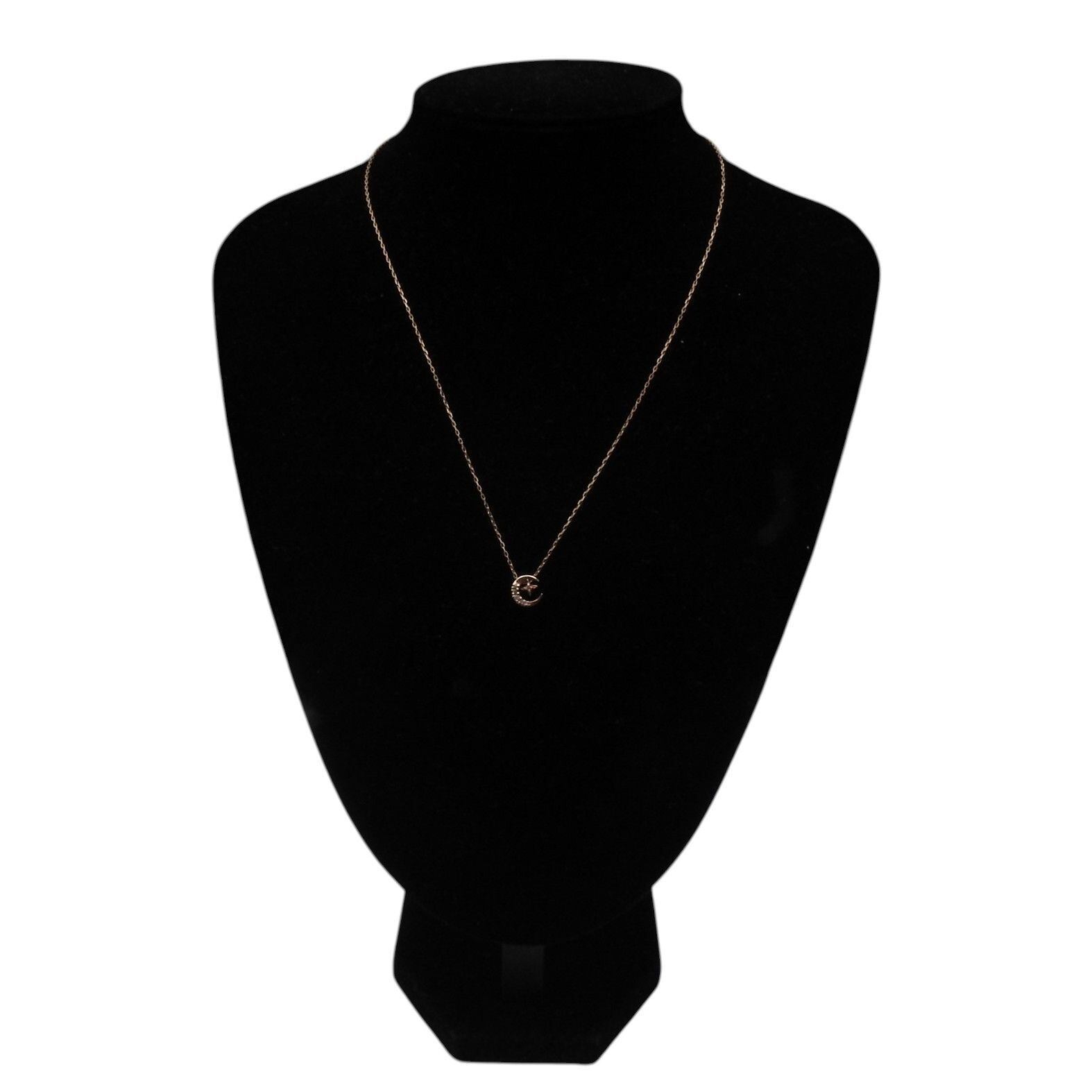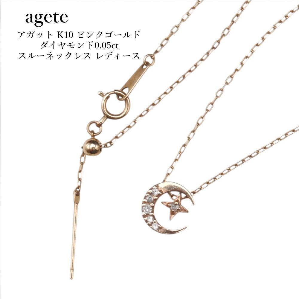 agete アガット K10 ピンクゴールド ダイヤモンド0.05ct ムーン スターモチーフスルーネックレス レディース