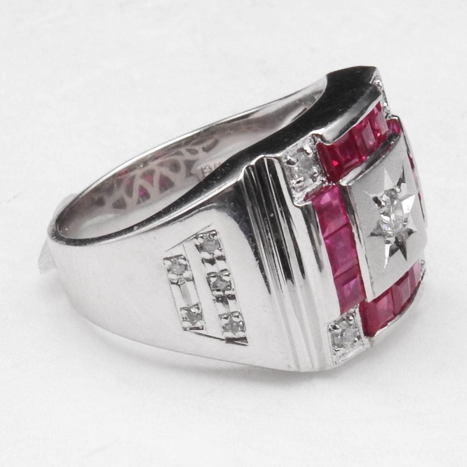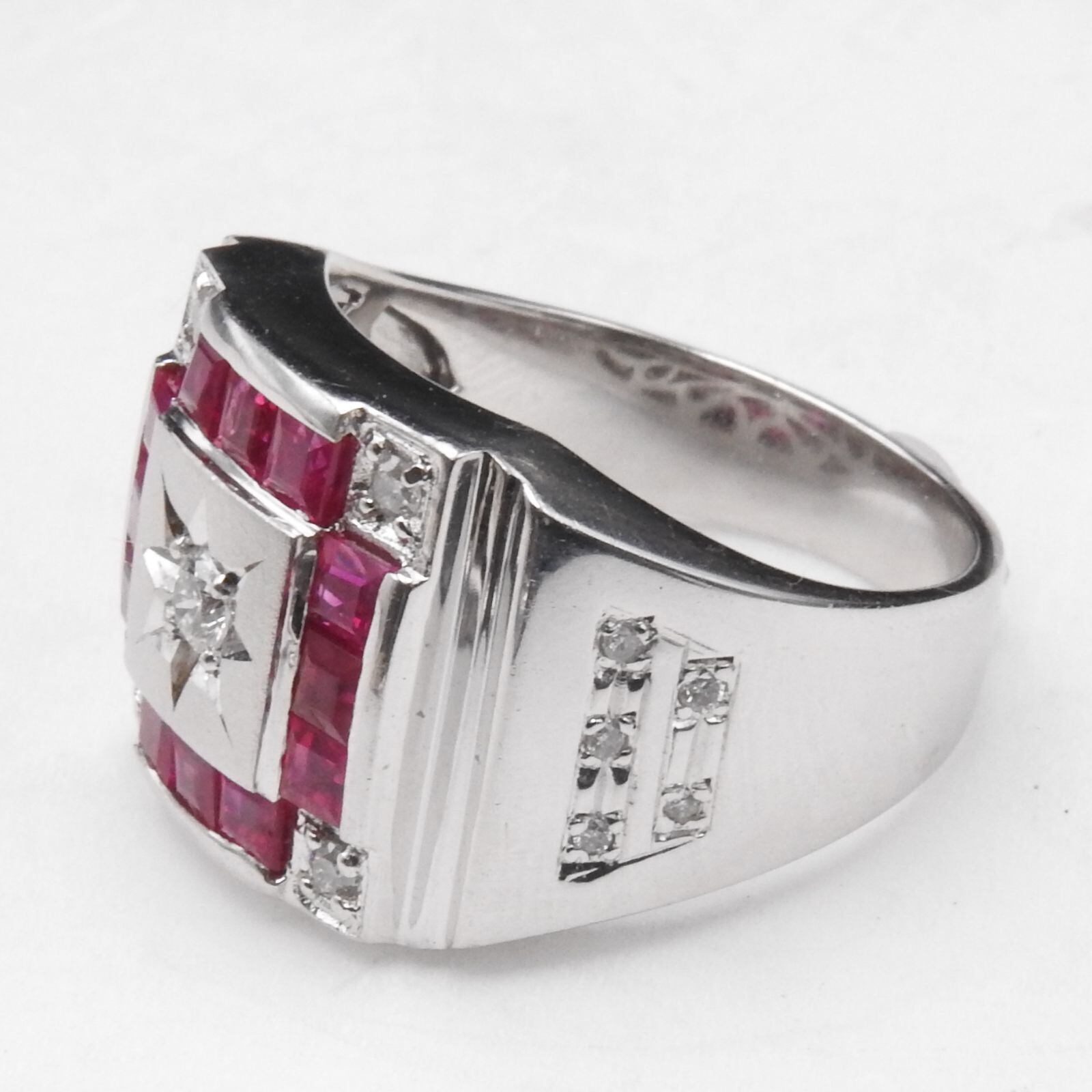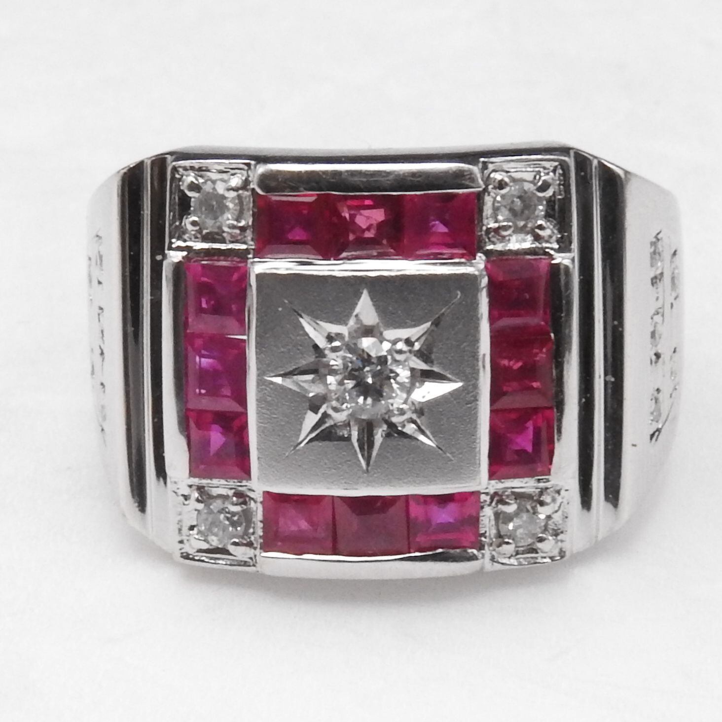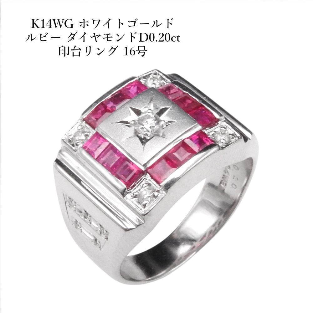 【商品名】K14WG ホワイトゴールド ルビー ダイヤモンドD0.20ct 印台リング 16号