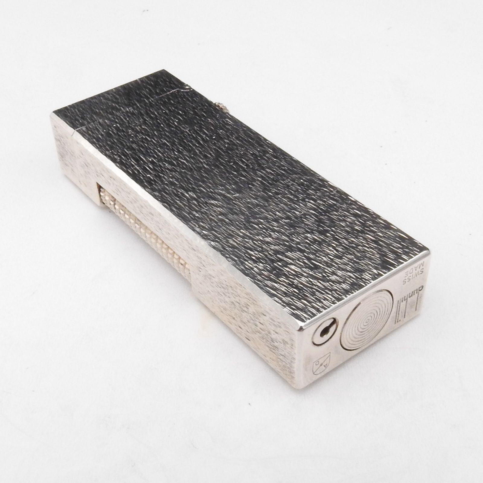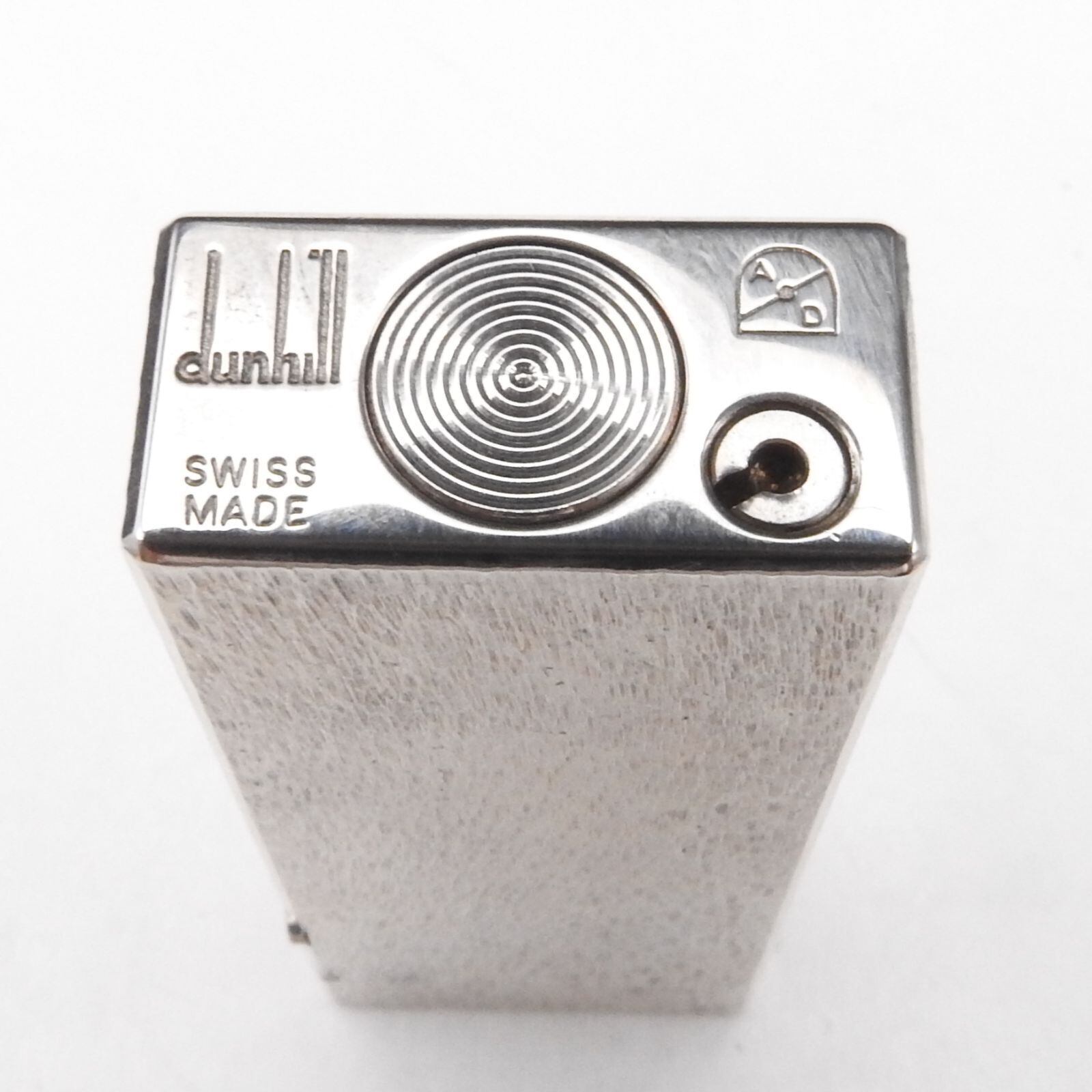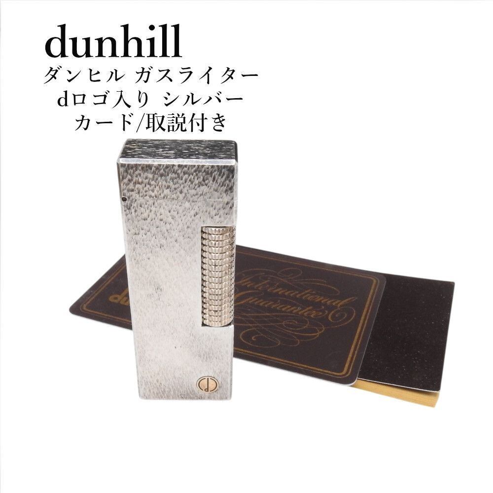 【着火確認済み】ダンヒル dunhill ガスライター dロゴ入り シルバー 喫煙グッズ 柄物 カード/取説付き