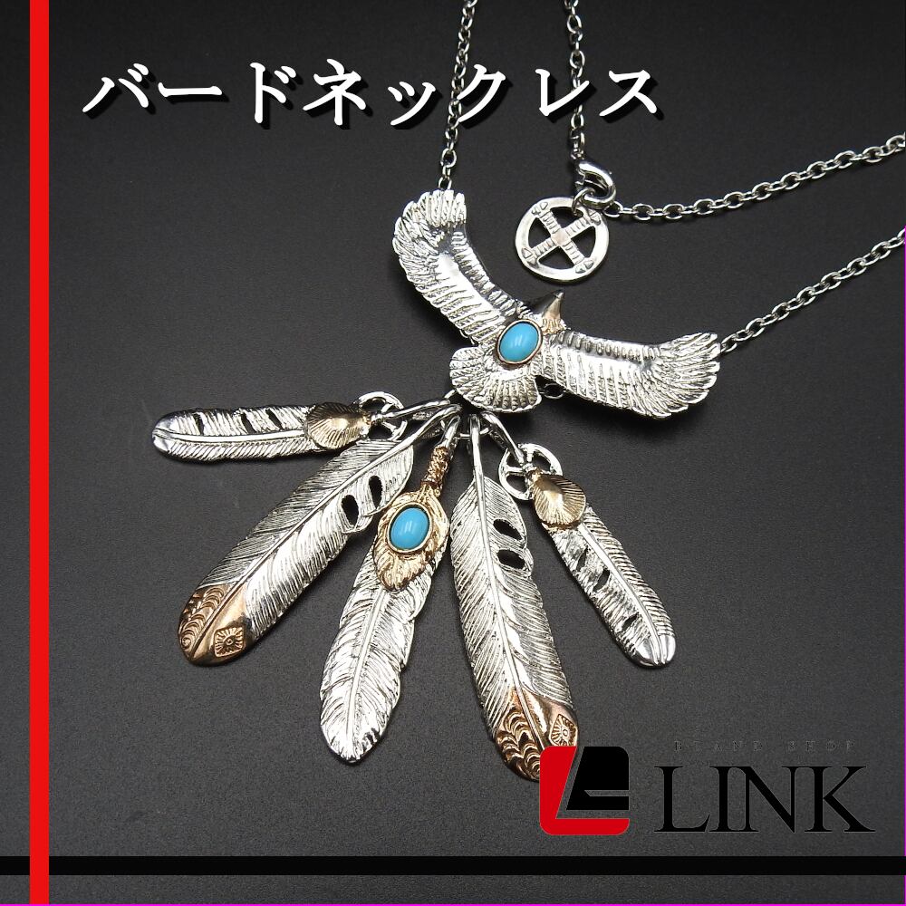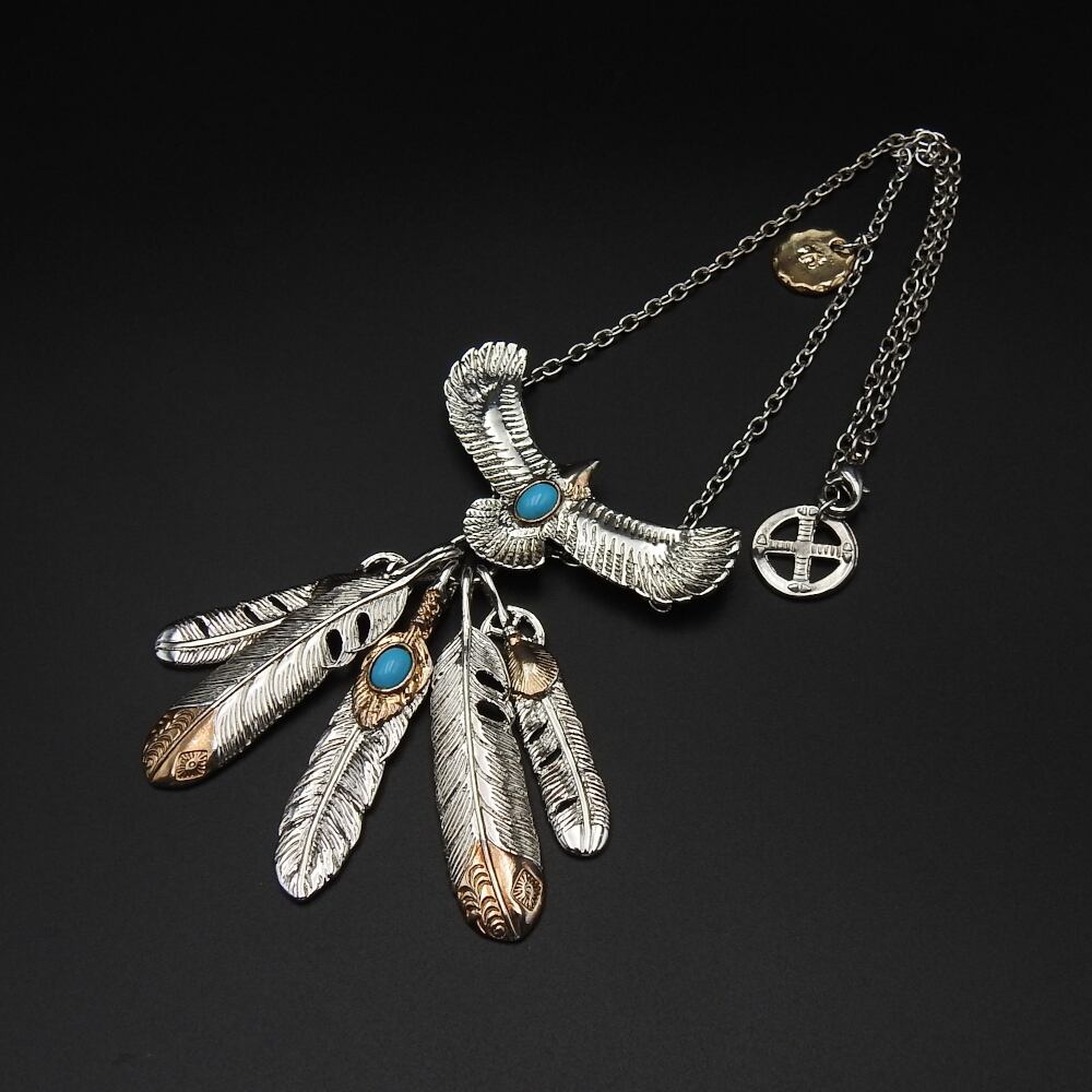 イーグルネックレス 色石 鷹 イーグル シルバーカラー×ゴールドカラー 羽根 ネイティブアクセサリー 金属 メンズ レディース アクセサリー