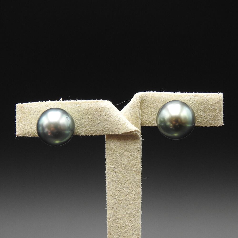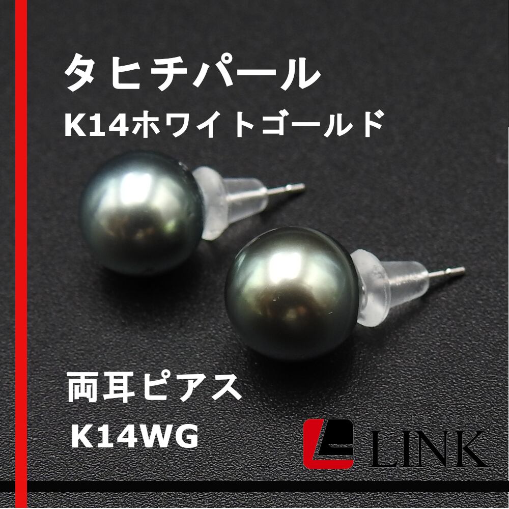タヒチパール 黒蝶真珠 ピアス K14WG 直結ピアス ホワイトゴールド 球体 両耳用 レディース アクセサリー 南洋パール