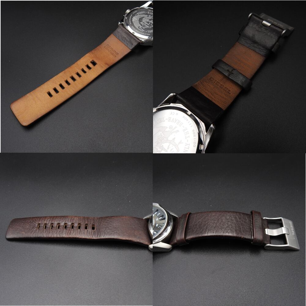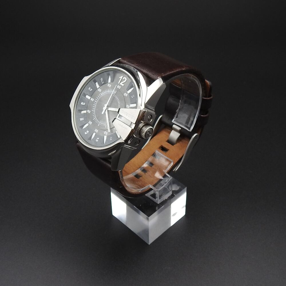 【稼働確認済み】ディーゼル DIESEL Master Chief マスターチーフ メンズ 腕時計 DZ-1206 グレー QZ レザー ブラウン カレンダー
