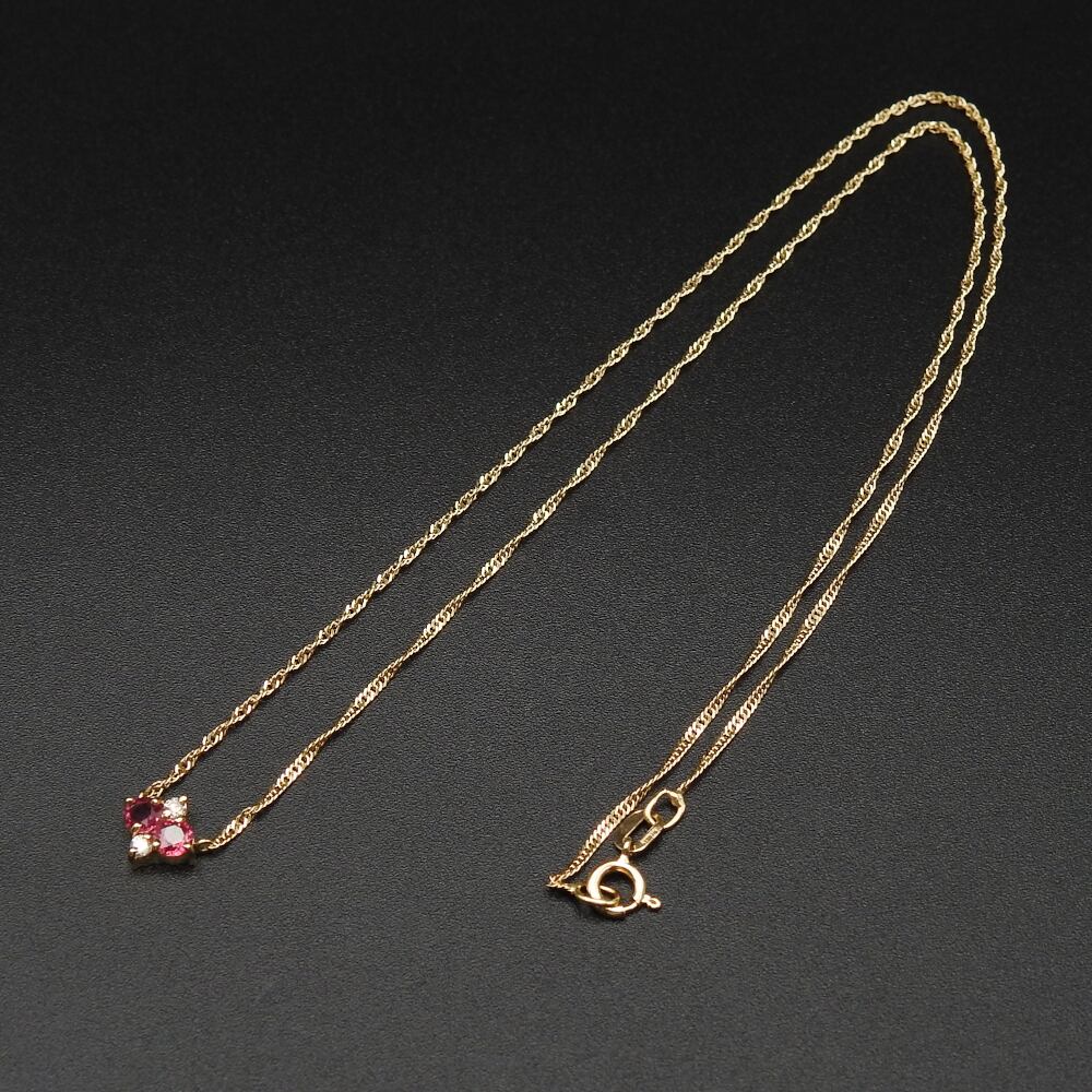 【美品】K18YG ネックレス R0.45 透明石 イタリア製 刻印 イエローゴールド アクセサリー チェーン レディース