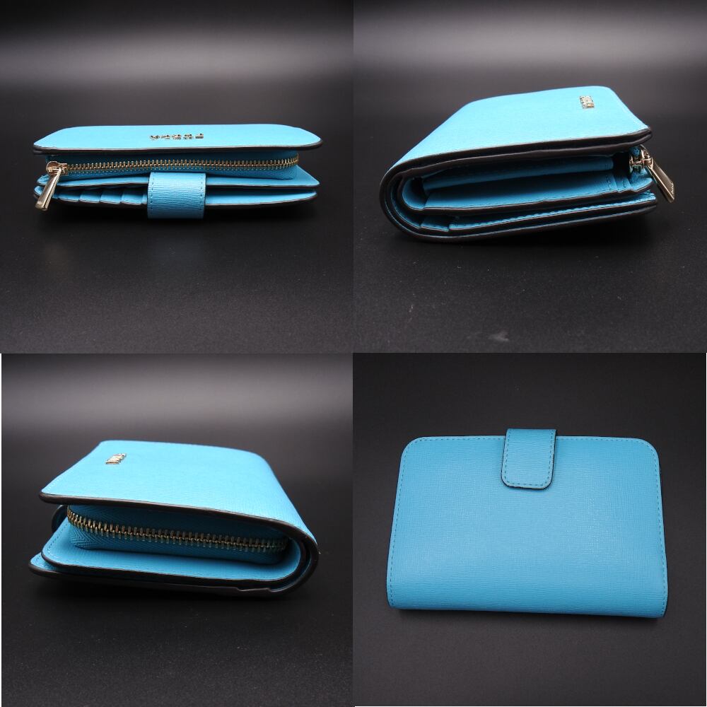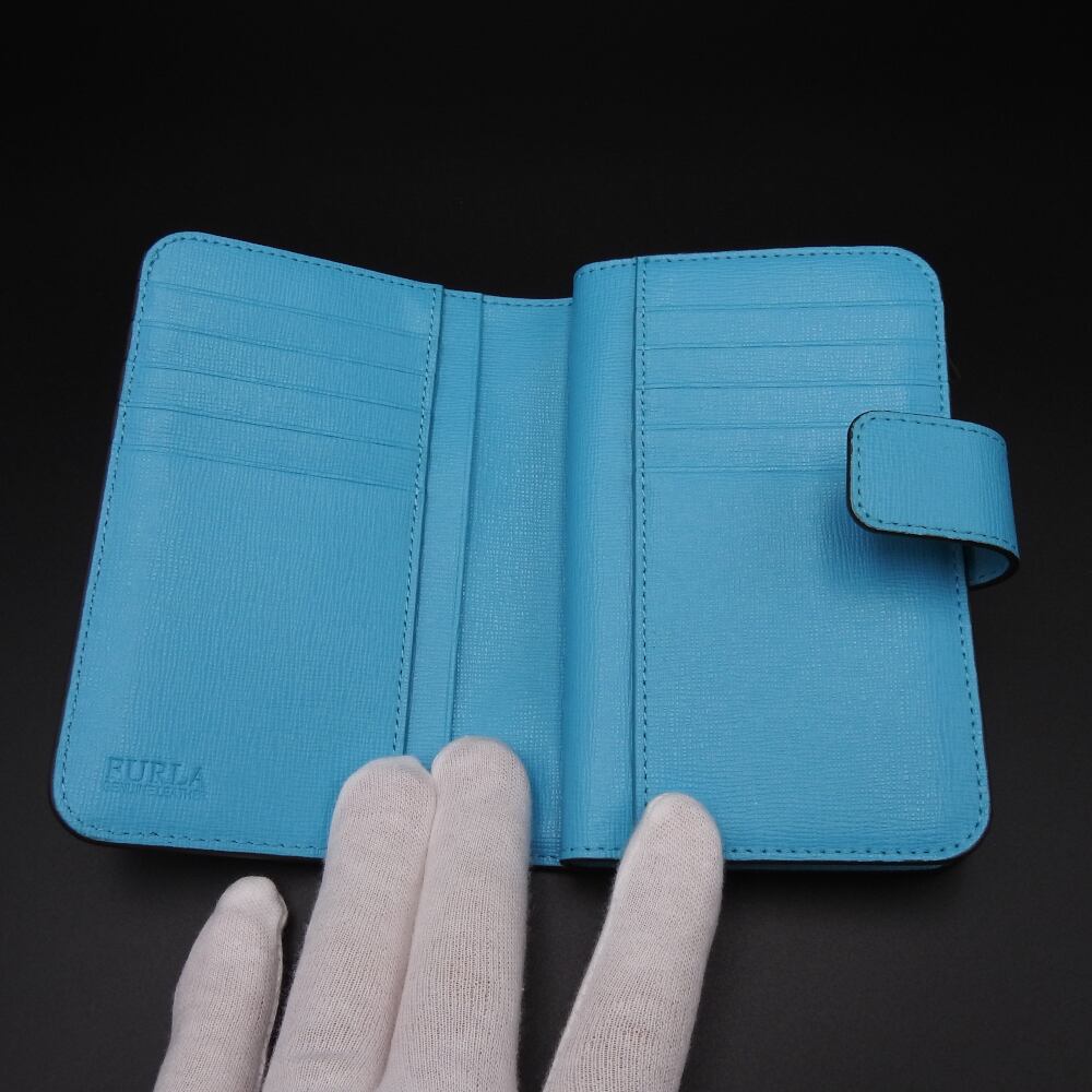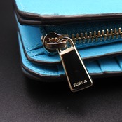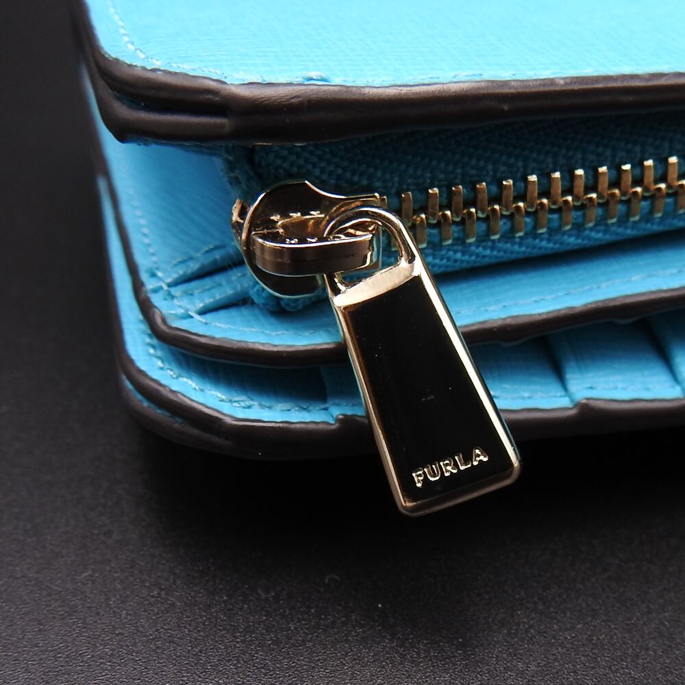 美品 Furla(フルラ) 財布 二つ折り BABYLON バビロン ジップ レディース(正規品)ライトブルー ターコイズブルー