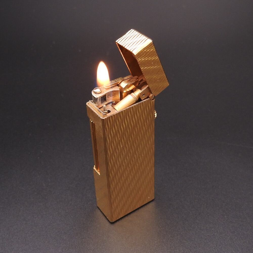 【着火確認済み】現状渡し ダンヒル dunhill ゴールドストライプ柄 ローラータイプ ガスライター スイス製