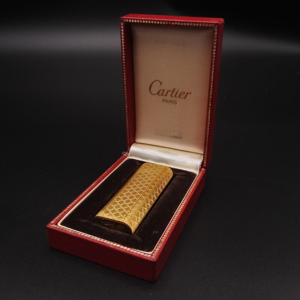 【着火確認済み】Cartier カルティエ ガスライター オーバル 格子柄 ゴールドカラー メンズ レディース