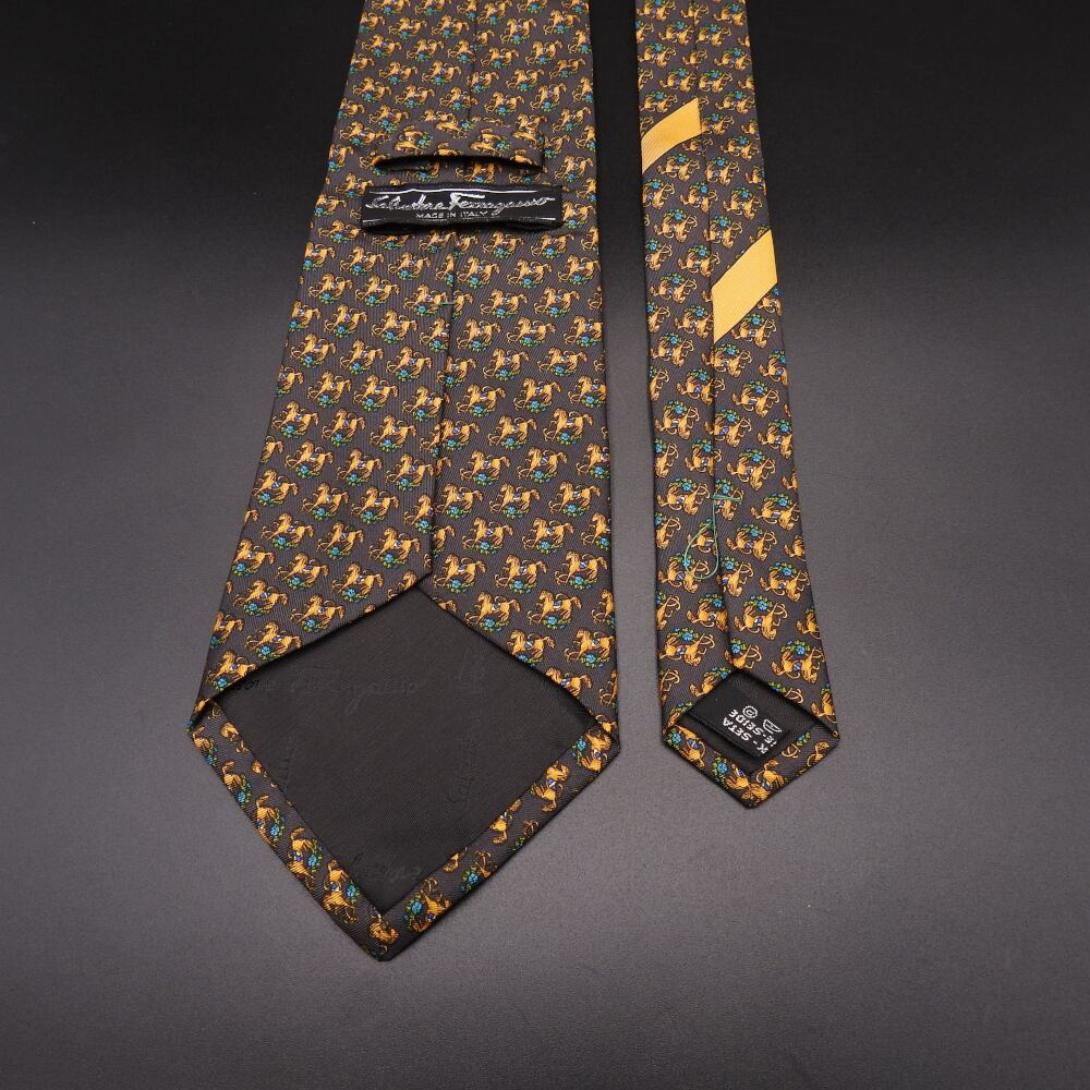 最高級シルク100%【正規品】Salvatore Ferragamo サルヴァトーレ フェラガモ 馬柄 黒系 スーツ メンズ