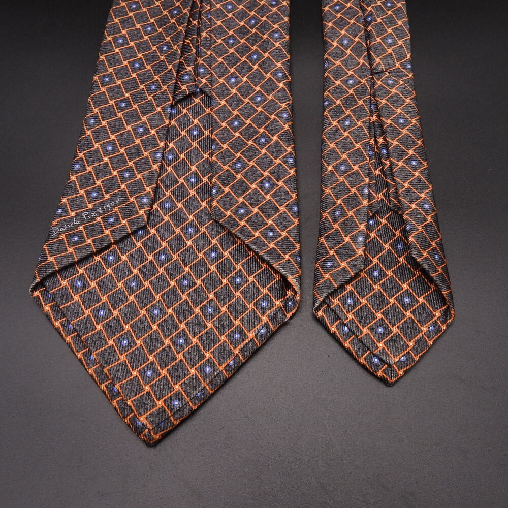 最高級シルク100%【正規品】BVLGARI(ブルガリ) ネクタイ ブラック×オレンジ 柄物 スーツ ビジネス カジュアル