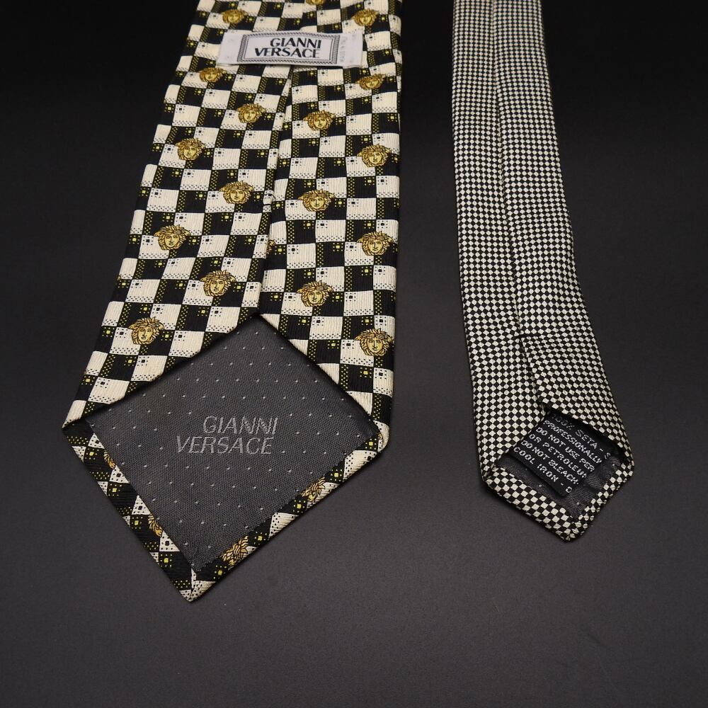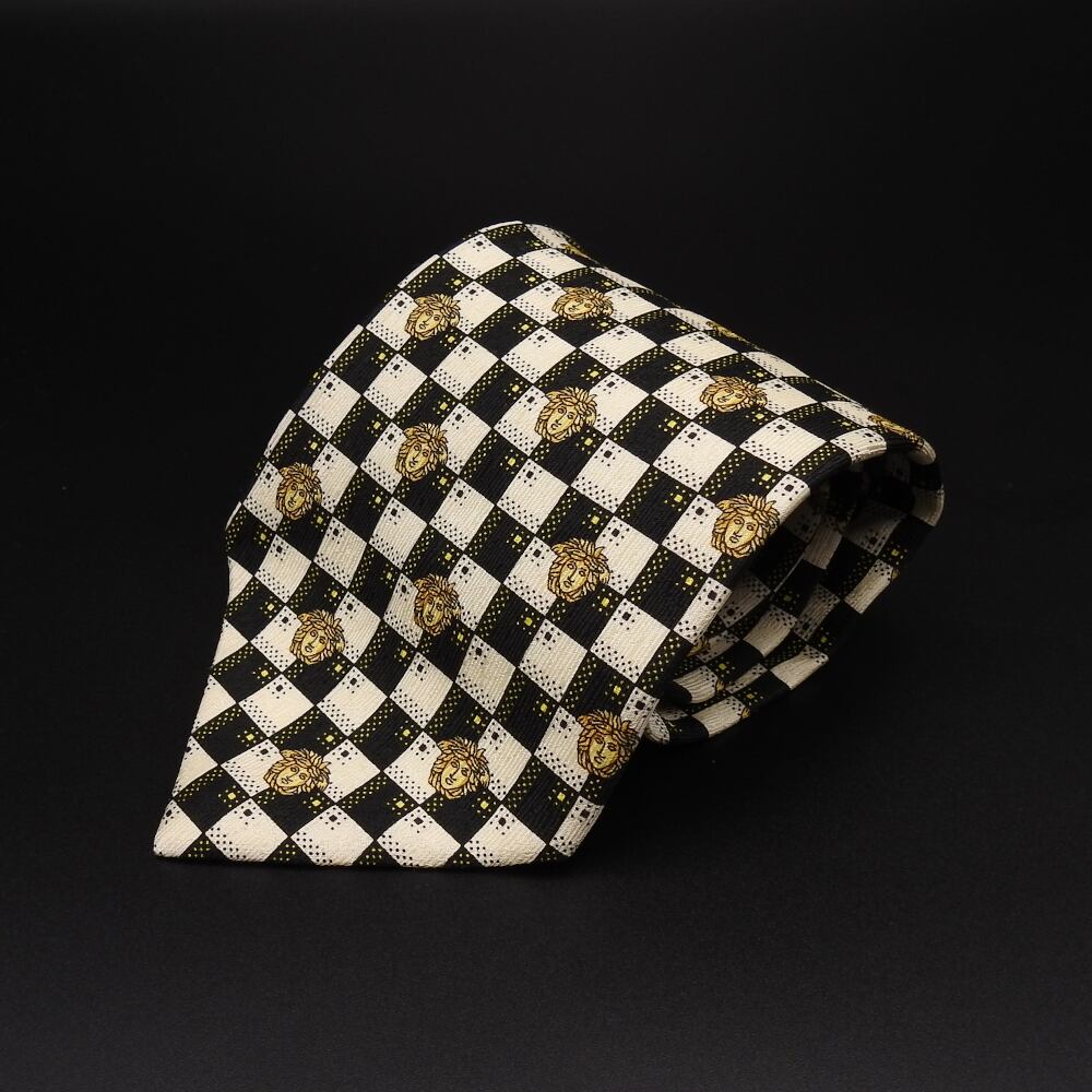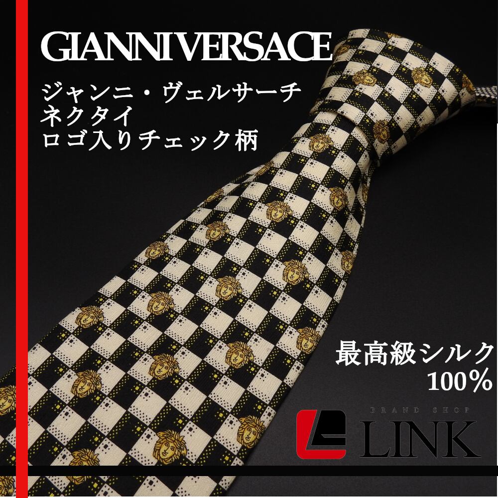 最高級シルク100%【正規品】ジャンニ・ヴェルサーチ GIANNI VERSACE ロゴ入り チェック柄 柄物 ネクタイ スーツ メンズ