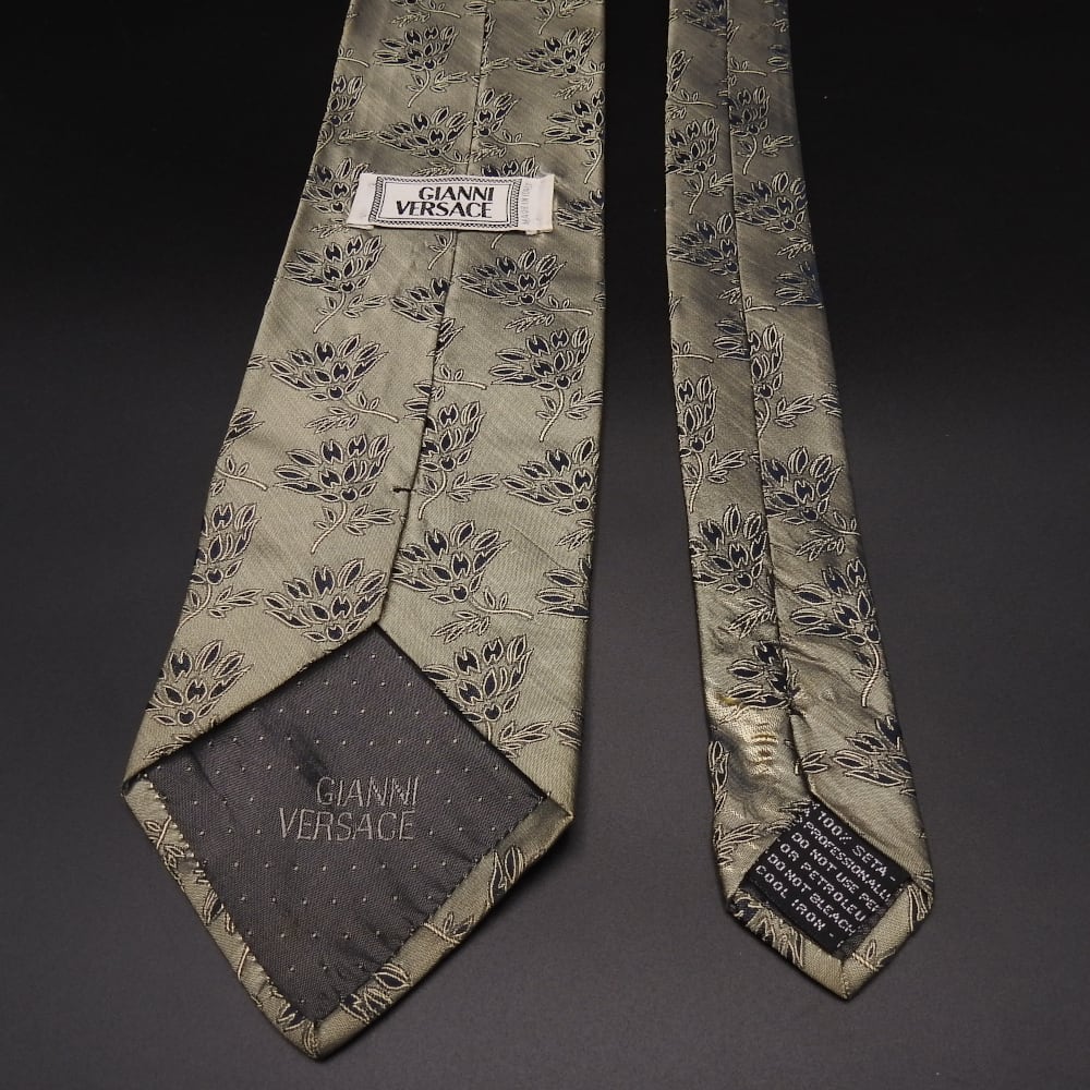 最高級シルク100%【正規品】ジャンニ・ヴェルサーチ GIANNI VERSACE 花柄 光沢 ネクタイ スーツ メンズ