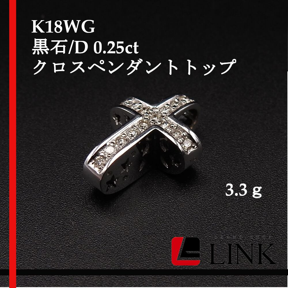 【美品】K18WG 黒石 D 0.25ct クロスペンダントトップ 3.25g ホワイトゴールド レディース アクセ