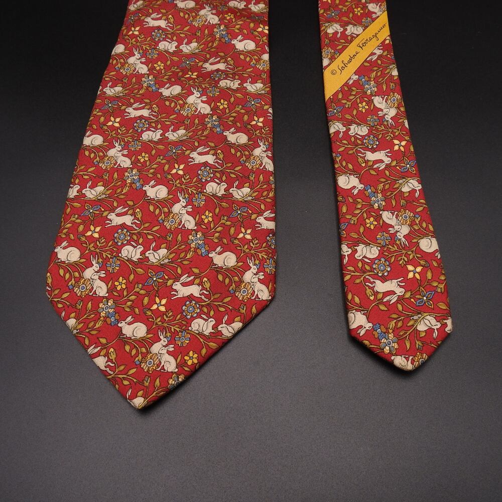 最高級シルク100%【正規品】Salvatore Ferragamo サルヴァトーレ フェラガモ うさぎ柄 レッド スーツ メンズ