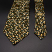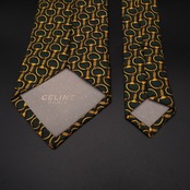 最高級シルク100% 【正規品】CELINE セリーヌ ネクタイ グリーン×イエロー 柄物 スーツ ビジネス メンズ