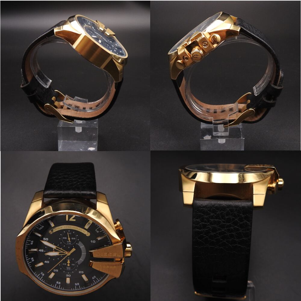 【稼働確認済み】 ディーゼル DIESEL ディーゼル腕時計 DZ4344 アナログ クオーツ クロノグラフ MEGA GHIEF メガチーフ パックマン SS/革 ケース/取説付き メンズ