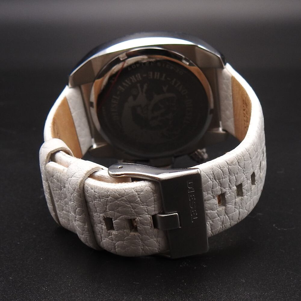 【稼働確認済み】 DIESEL ディーゼル OVERFLOW オーバーフロー メンズ 腕時計 DZ4315 レザー 革ベルト ホワイト アナログ