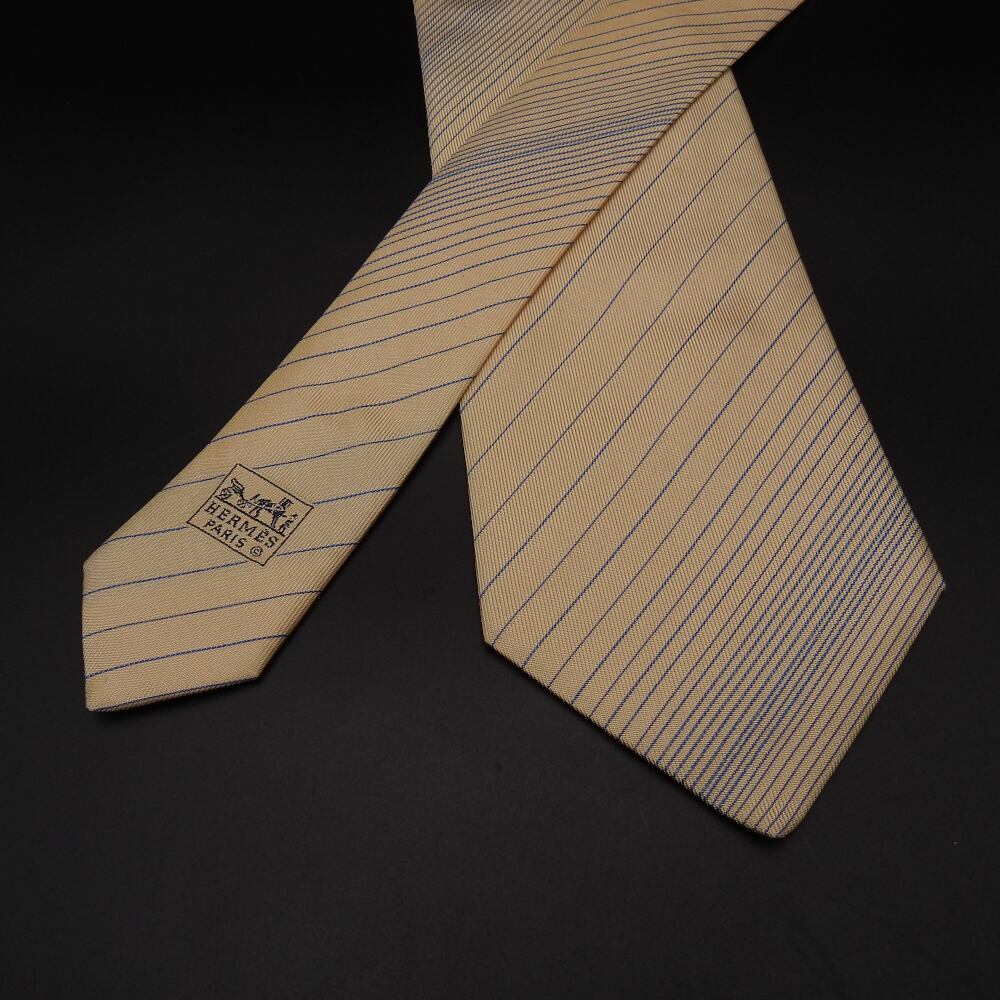 最高級シルク100%【正規品】エルメス HERMES ネクタイ 柄物 ストライプ ベージュ スーツ ビジネス カジュアル